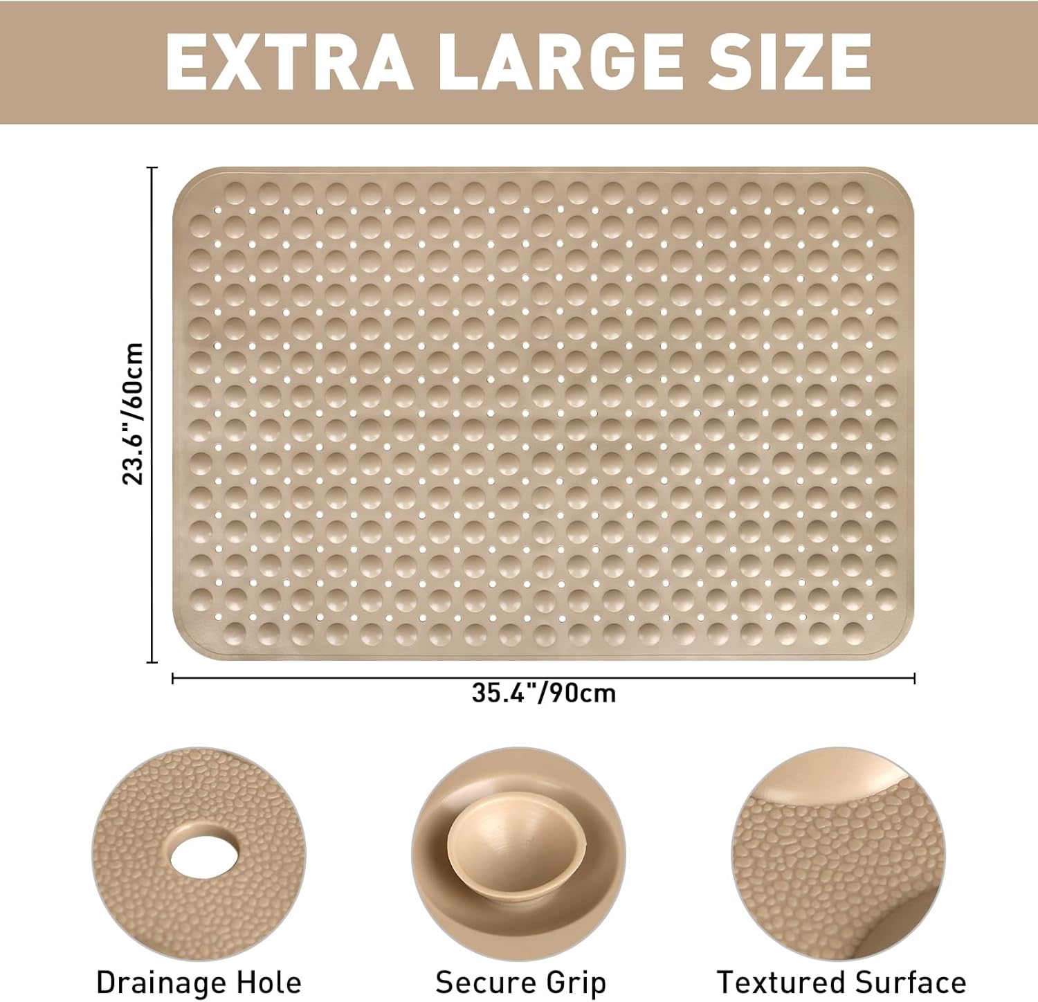 Shower Mat Non Slip: 35.4 x 23.6 Inch Extra Large TPE Shower Mats for Inside Shower - Anti Slip Shower Stall Matt with Drain Hole and Suction Cups for Elderly