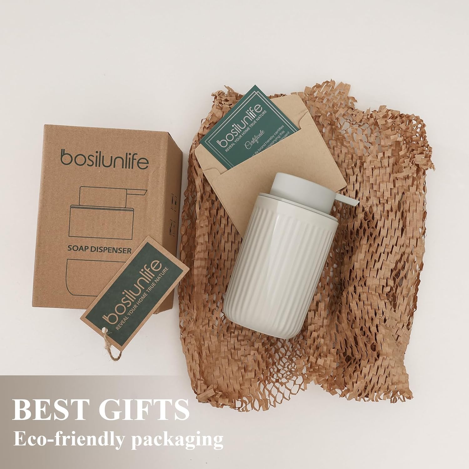 BosilunLife Foam Hand Soap Dispenser - Ceramic Foaming Soap Dispenser for Bathroom 12oz Refillable Liquid Lotion Soap Dispenser with Rust-Proof Foaming Pump for Countertop