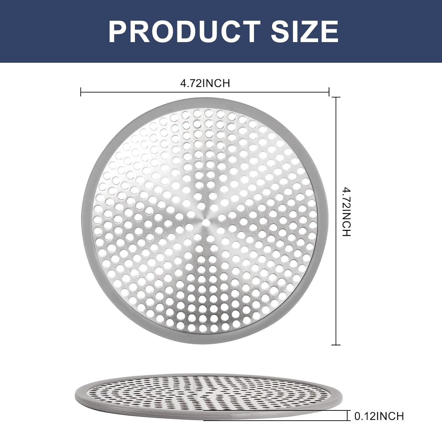 - Stainless steel drain protector outside diameter 12cm(4.75"), Equipped with silicone edges to help secure and prevent hand damage, providing long-lasting protection against drainage blockages