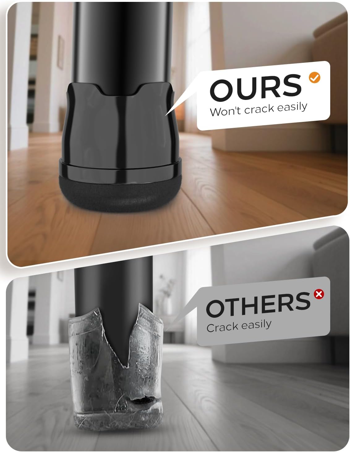 - Not Split & Falling off-Easily Crafted from high-quality TPE, our chair leg floor protectors feature tightly pressed felt and silicone. Rubber chair leg floor protectors in transparent/black options discreetly blend with furniture legs. Designed to securely grip and snugly fit onto chair legs, withstands 200lbs+ weight without splitting or sliding. Quiet gliding reduces 80% noise.