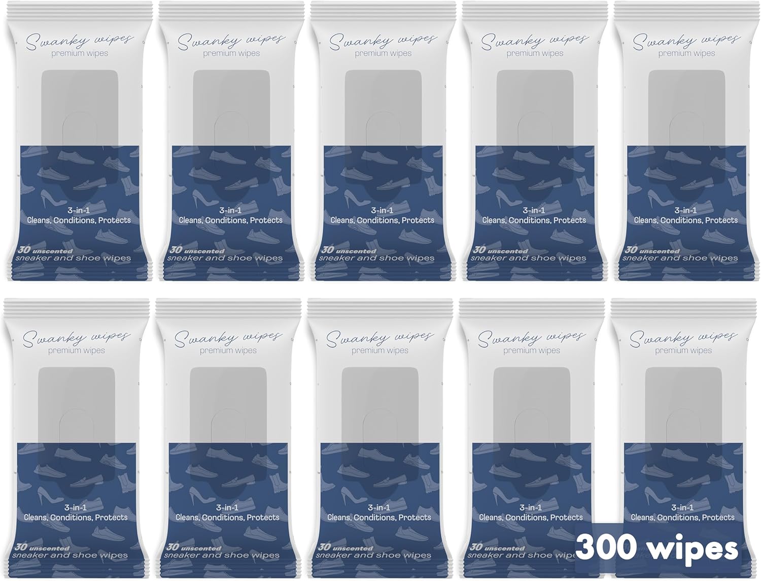- PRODUCT SPECS - Each pack of Swanky Shoe Cleaner Wipes contains 300 soft wipes, ensuring long-lasting use. These wipes are designed to be gentle yet thorough, suitable for use on leather, sneakers, and various other shoe materials. Compact and portable, they are ideal for home or travel.