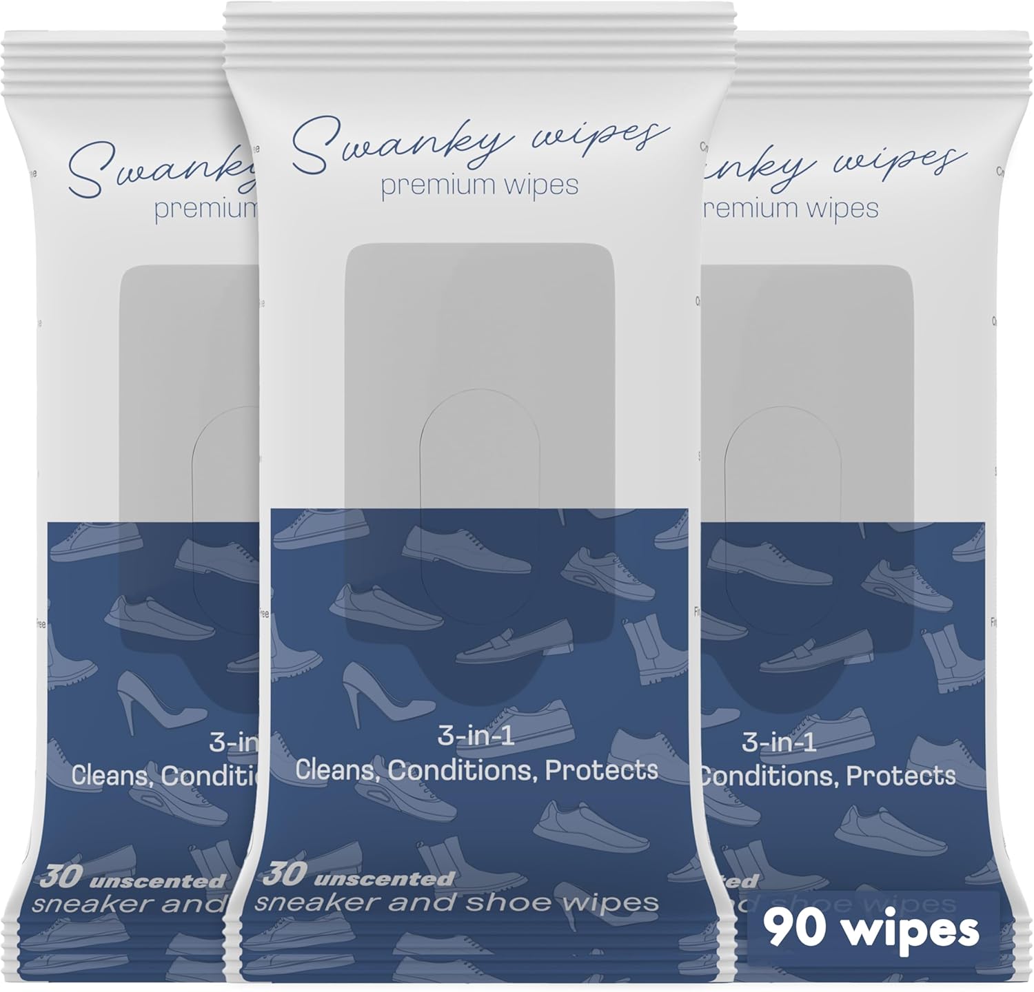 - PRODUCT SPECS - Each pack of Swanky Shoe Cleaner Wipes contains 90 soft wipes, ensuring long-lasting use. These wipes are designed to be gentle yet thorough, suitable for use on leather, sneakers, and various other shoe materials. Compact and portable, they are ideal for home or travel.