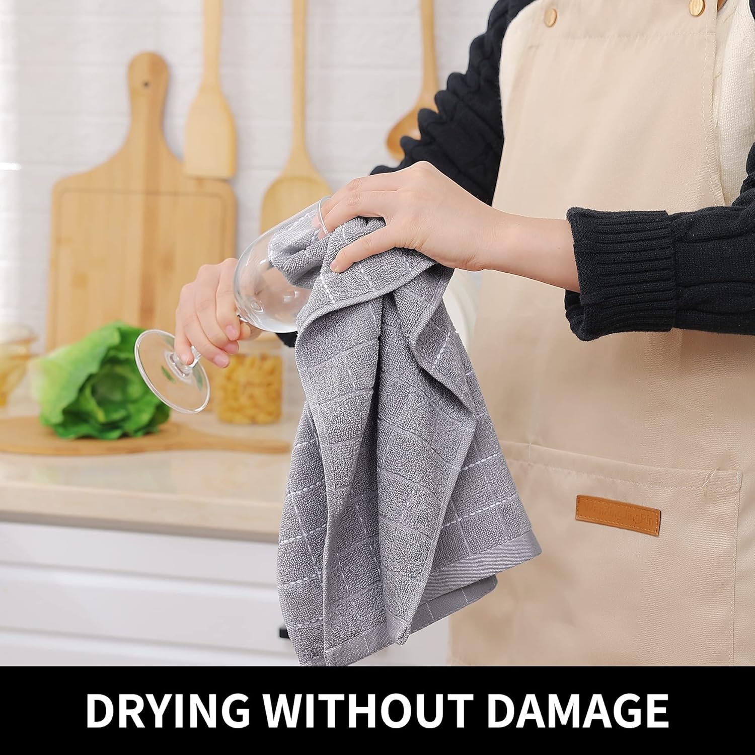 Homaxy 100% Cotton Terry Kitchen Towels(Light Grey, 13 x 28 inches), Checkered Designed, Soft and Super Absorbent Dish Towels, 12 Pack