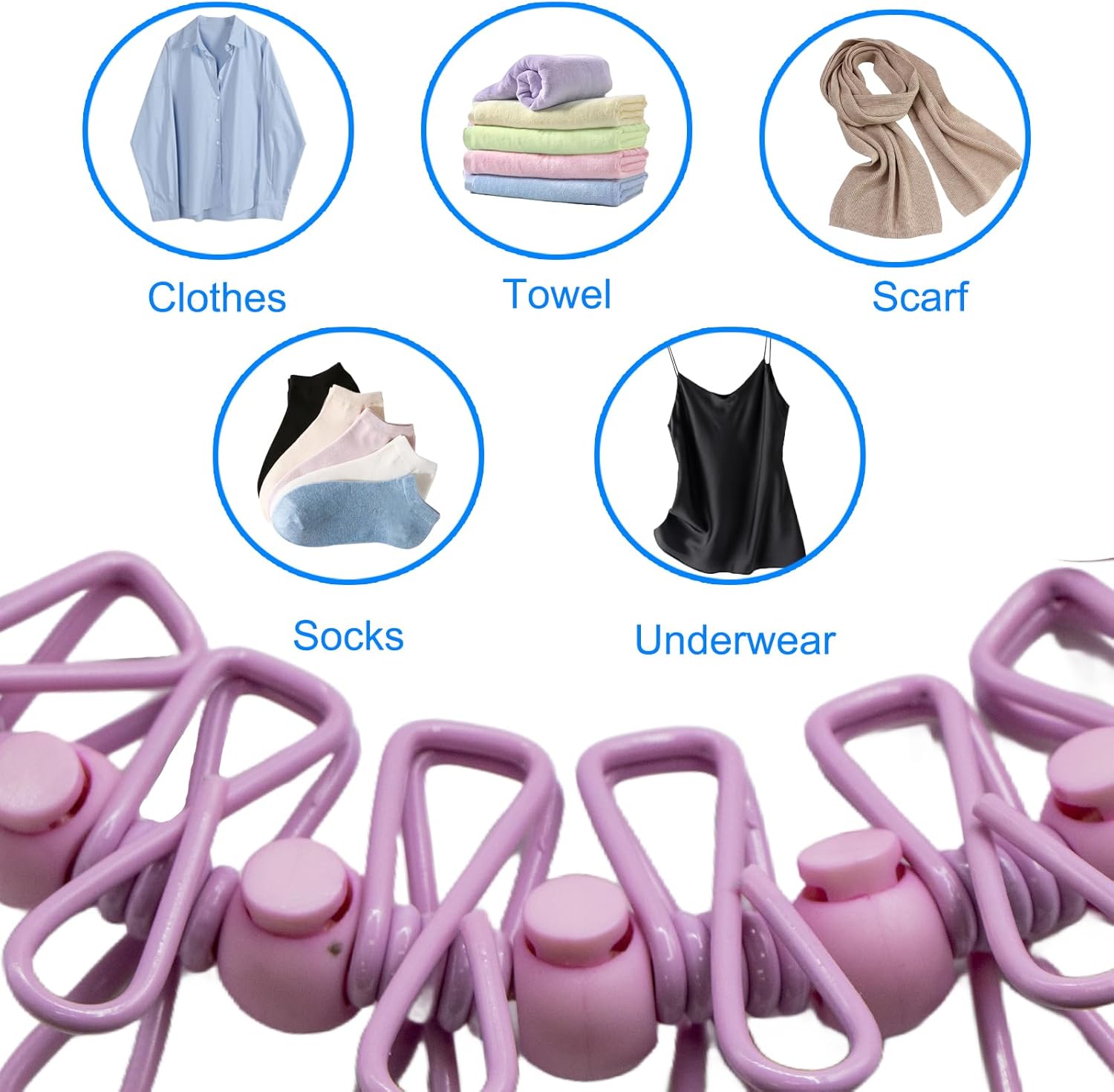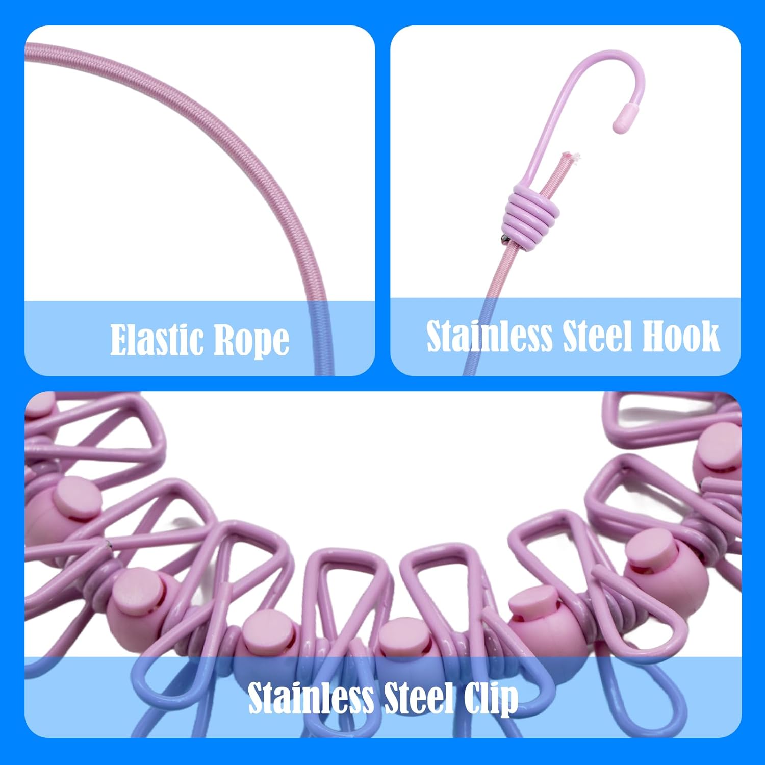 - [Innovative Design] The travel clothesline features 12 clothesline clamps and 13 windproof, non-slip clamps, all designed with a positioning bead. Our sturdy elastic rope supports heavy clothing more effectively than other clotheslines.