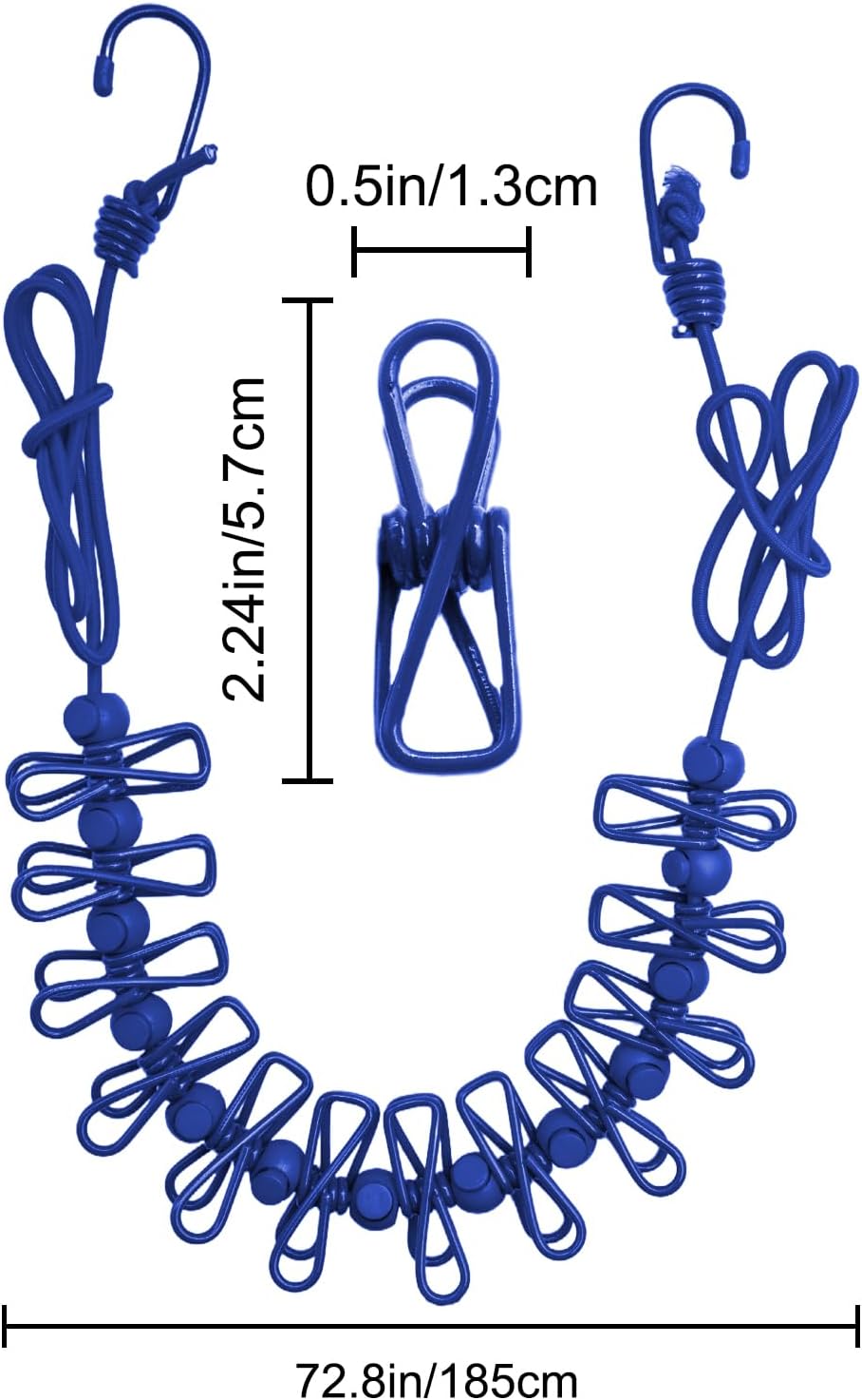 - [Innovative Design] The travel clothesline features 12 clothesline clamps and 13 windproof, non-slip clamps, all designed with a positioning bead. Our sturdy elastic rope supports heavy clothing more effectively than other clotheslines.