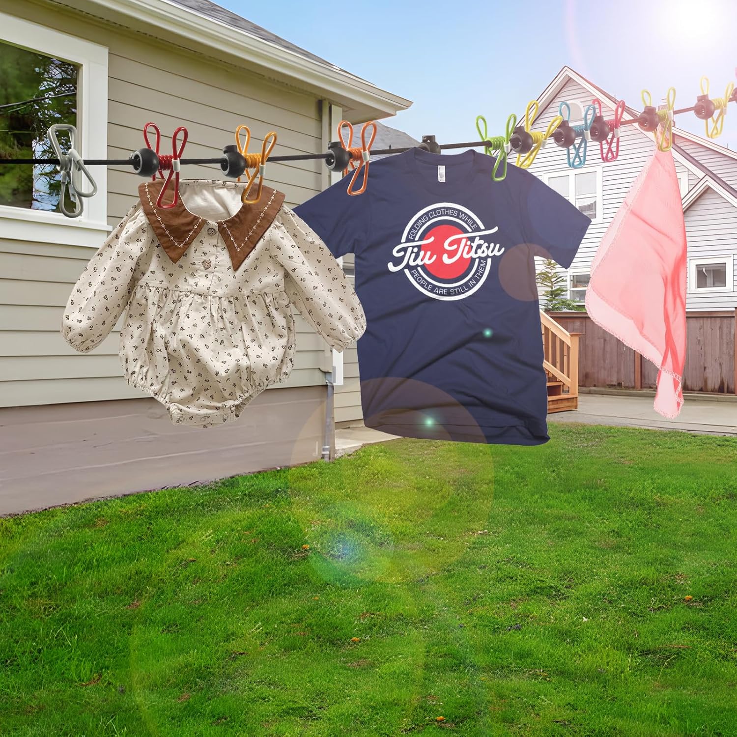 - [Innovative Design] The travel clothesline features 12 clothesline clamps and 13 windproof, non-slip clamps, all designed with a positioning bead. Our sturdy elastic rope supports heavy clothing more effectively than other clotheslines.