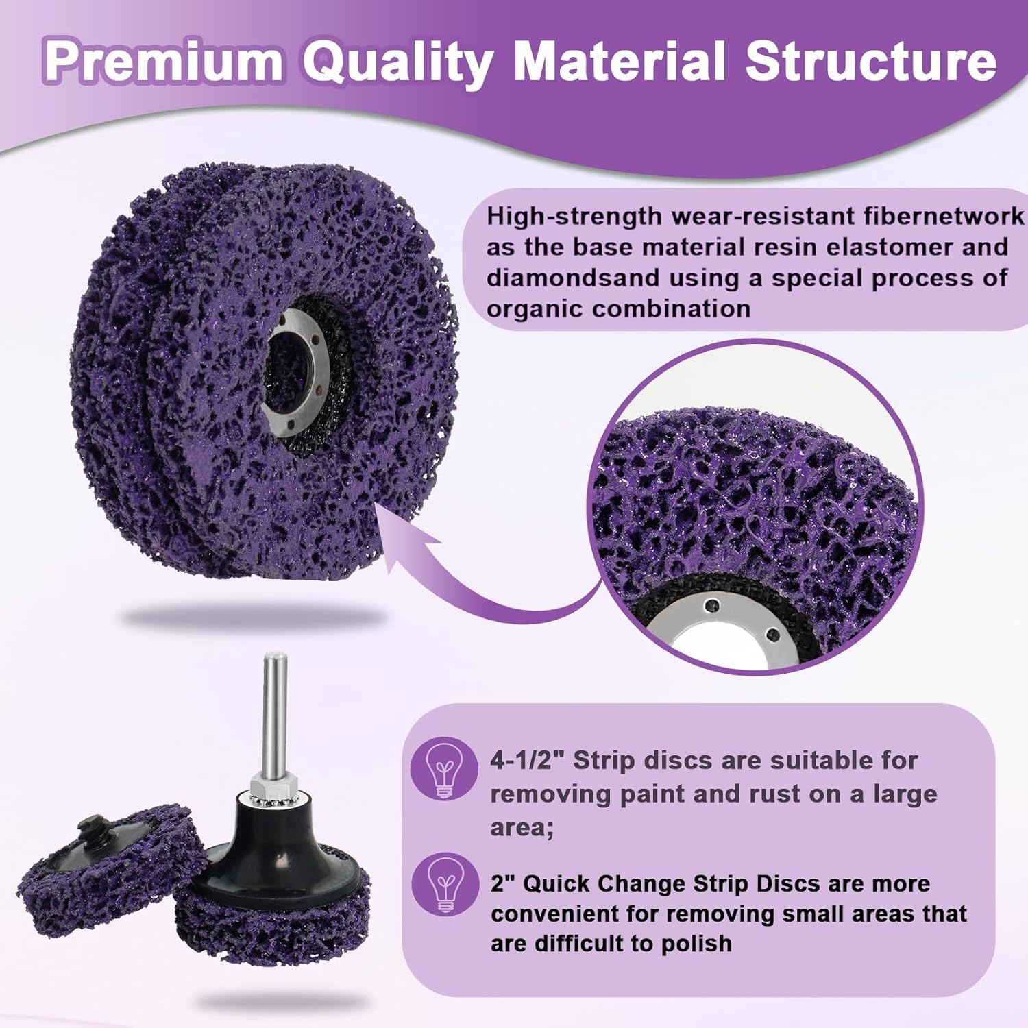 - ใ๐ฃ๐ฟ๐ฒ๐บ๐ถ๐๐บ ๐ค๐๐ฎ๐น๐ถ๐๐ ๐ ๐ฎ๐๐ฒ๐ฟ๐ถ๐ฎ๐นใPremium Quality Material - The main abrasive material of this stripping wheel kit is made of diamond, purple nylon webbing and silicon carbide, which perform well in high-speed polishing and grinding processes. It is more durable and resistant to detachment, thereby extending its service life.