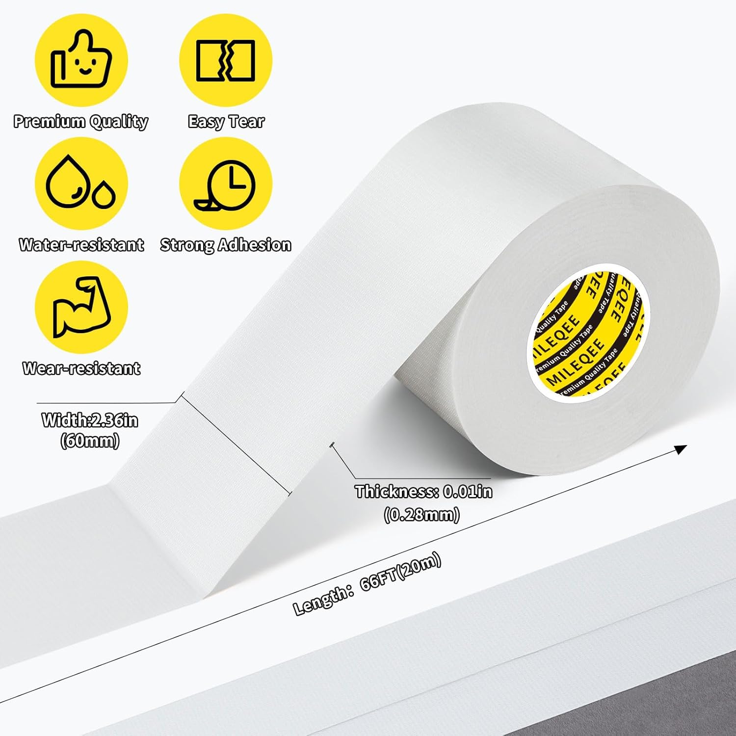 - High Strength and Wear Resistance: Manufactured using high-strength mesh weather resistant shell, this duct tape white provides exceptional durability even under heavy loads. It can withstand pressure and wear, ensuring your repairs can endure demanding conditions.