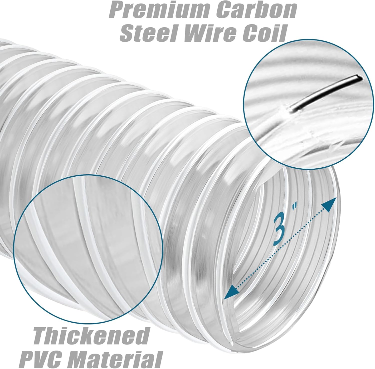 - PREMIUM CARBON STEEL WIRE COIL; Premium carbon steel wire coil not only strengthens the hose and makes it less prone to knots, but also enables electrostatic discharge when the PVC dust collection hose is grounded at both ends.