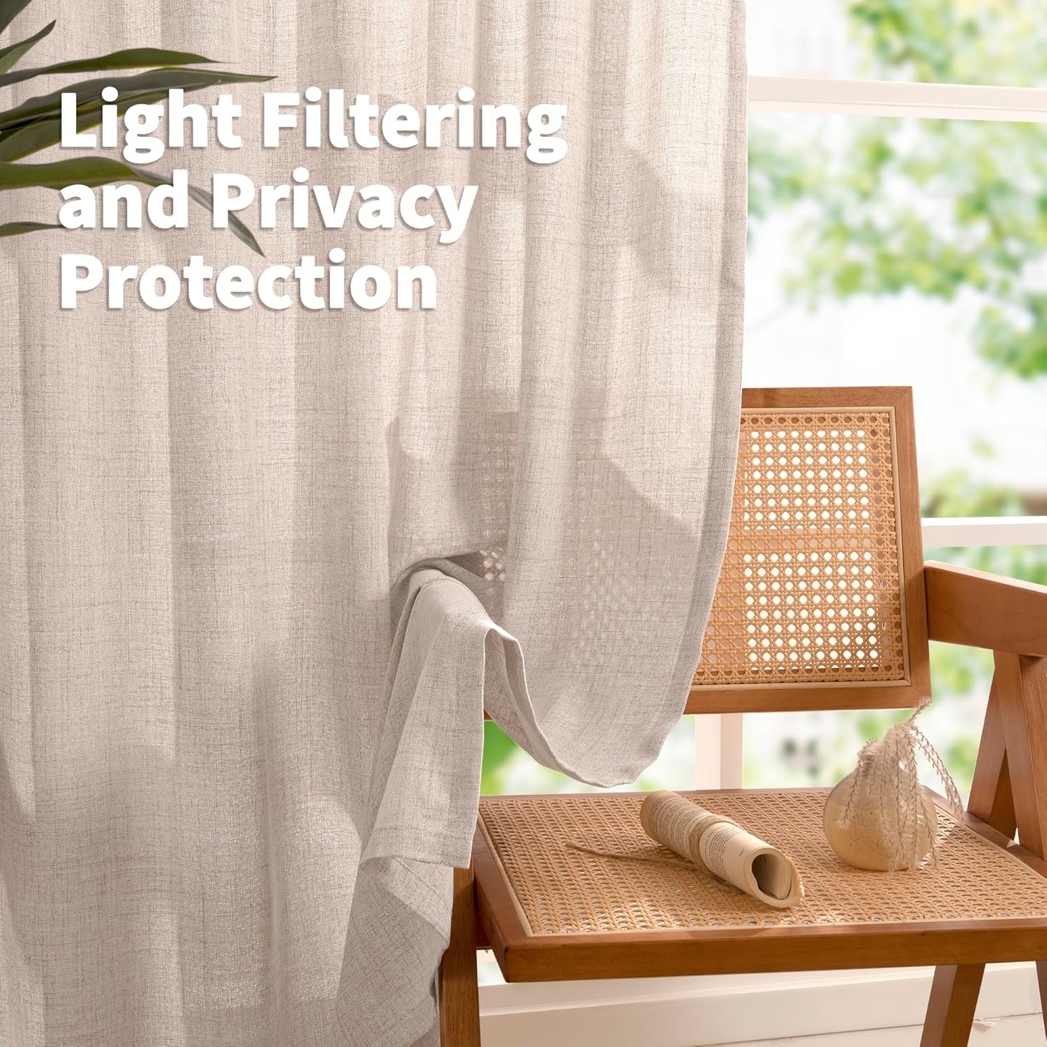 - Privacy Protection: Different from ordinary sheer drapes, our linen curtains are woven with a firmer and thicker texture that filters harsh light, while nice thickness helps provide privacy. Subtly balancing light and privacy that allow you to enjoy your leisure time.