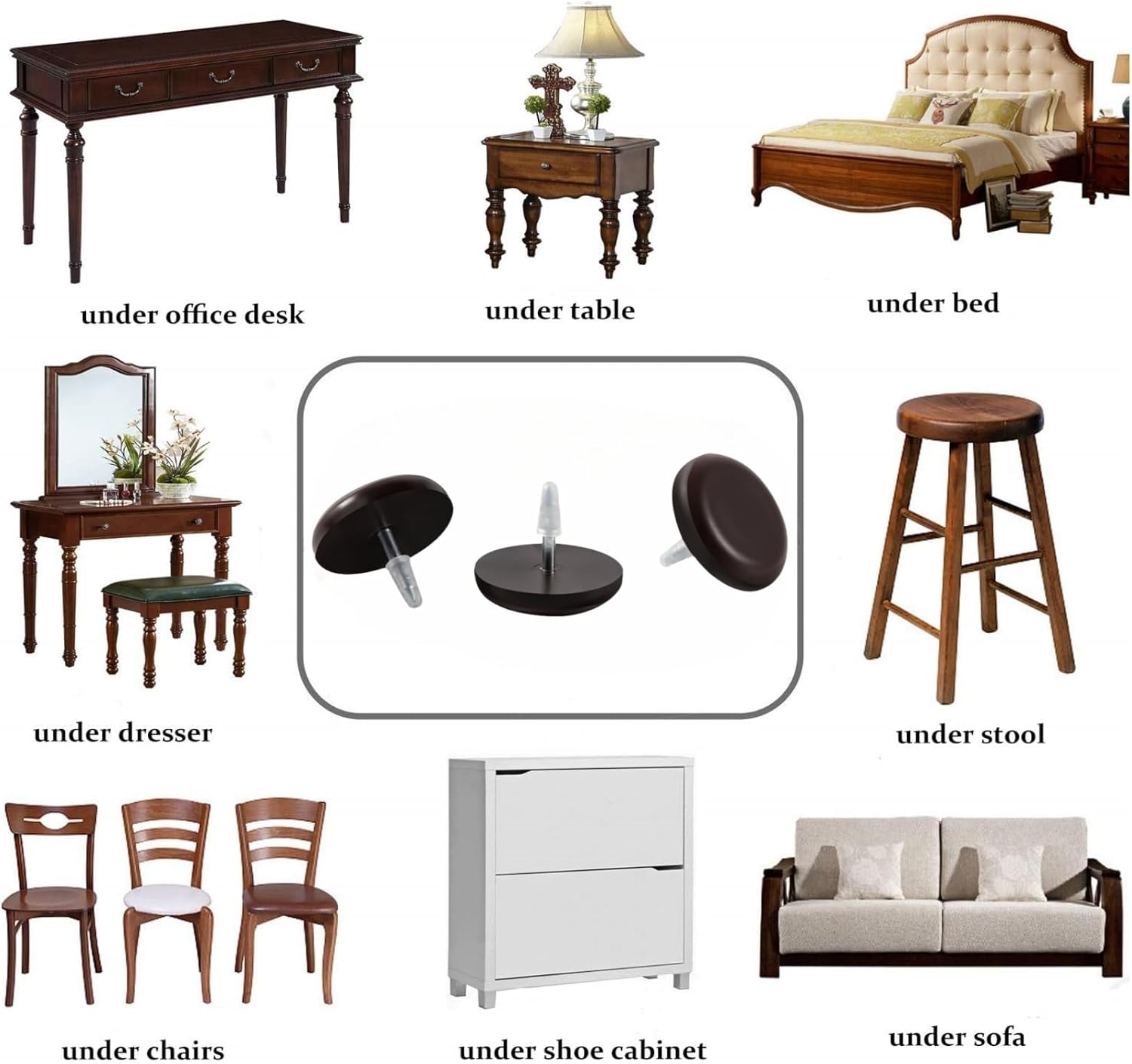 Furniture Glides Sliders-Furnigear PTFE (Teflon) Chair Leg Movers Sliders for Carpet Surface - Move Your Furniture Easy & Safely - Best Floor Protector (7/8" Nail, Brown-24 Pack, not for Wood Floors)