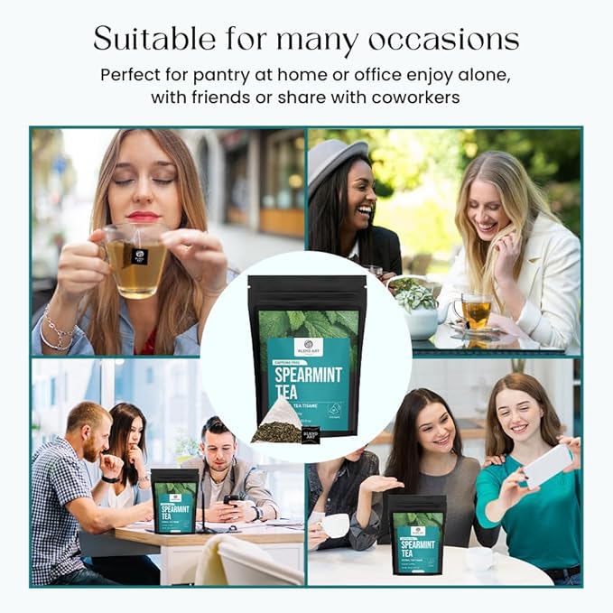 - Refreshing by Nature - Our Caffeine Free Spearmint Herbal Tea is a naturally soothing blend that refreshes your senses with every sip. The light, minty sweetness of spearmint is perfectly balanced with soft, earthy notes—making it an ideal tea to unwind with, hot or iced. It's calming, cooling, and quietly energizing