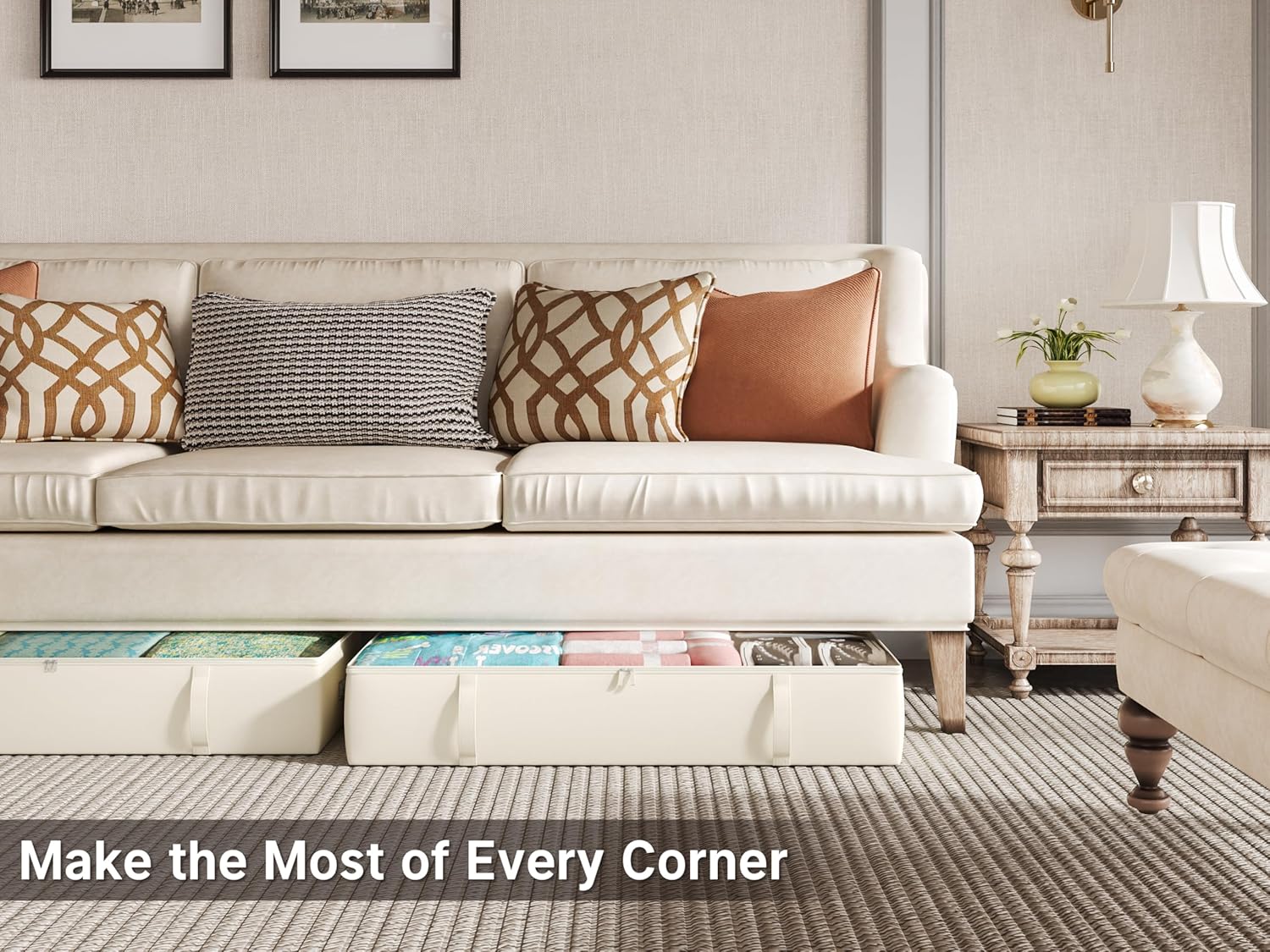 - Special Feature : Collapsible, Easy to Install, Fits bed/couch 8 inches off the floor or higher, Stackable, Suitable for Bed Couch Closet Collapsible, Easy to Install, Fits bed/couch 8 inches off the floor or higher, Stackable, Suitable for Bed Couch Closet