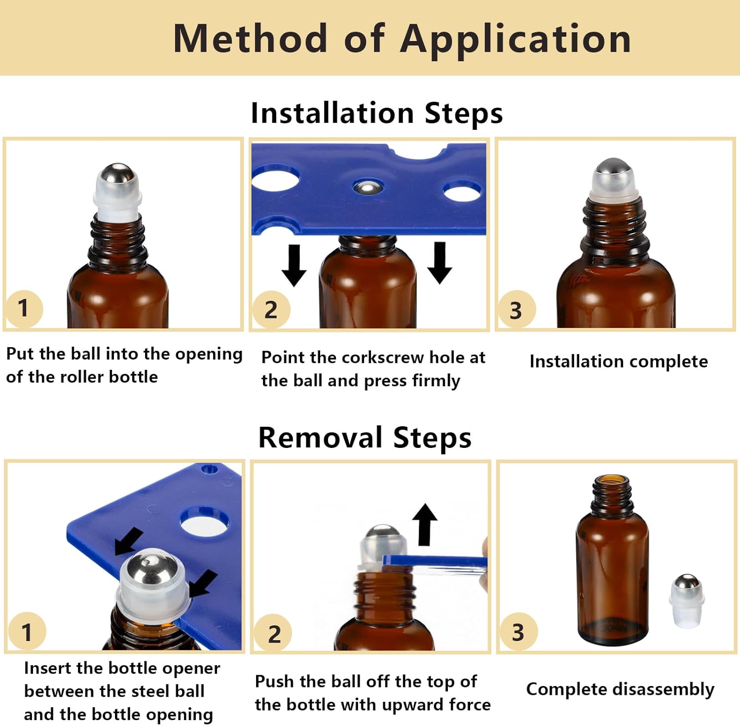 - Package Includes: We offered 4pcs empty roll on bottles, 1pcs opener and funnel are provided to open and fill essential oil easily, we also provided a 2ml dropper for more accurate measurement of the dripped liquid, using with our roller ball container for essential oils,you can enjoy every moment during massage or beauty salons.