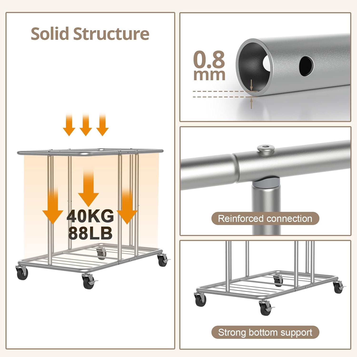 - [Sturdy & Stable Structure] made of a thickened metal poles, with a rust-resistant surface, this heavy-duty laundry hamper with wheels boasts a strong and stable structure that can support up to 88 lb.