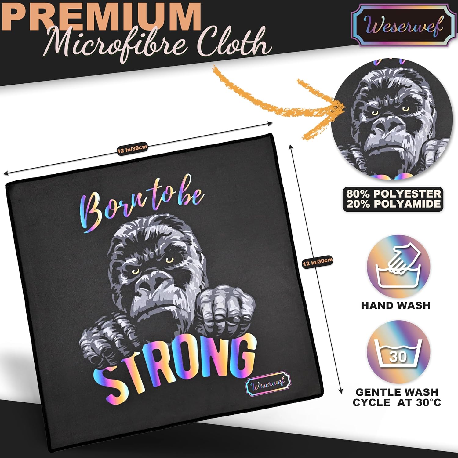 WESERWEF Design Microfiber Glasses Cleaning Cloth – Premium Cleaning Cloth for Eyeglasses, Screens, Tablets, Cameras & Lenses, 12" x 12", Ultra-Soft & Scratch-Free (Gorilla)