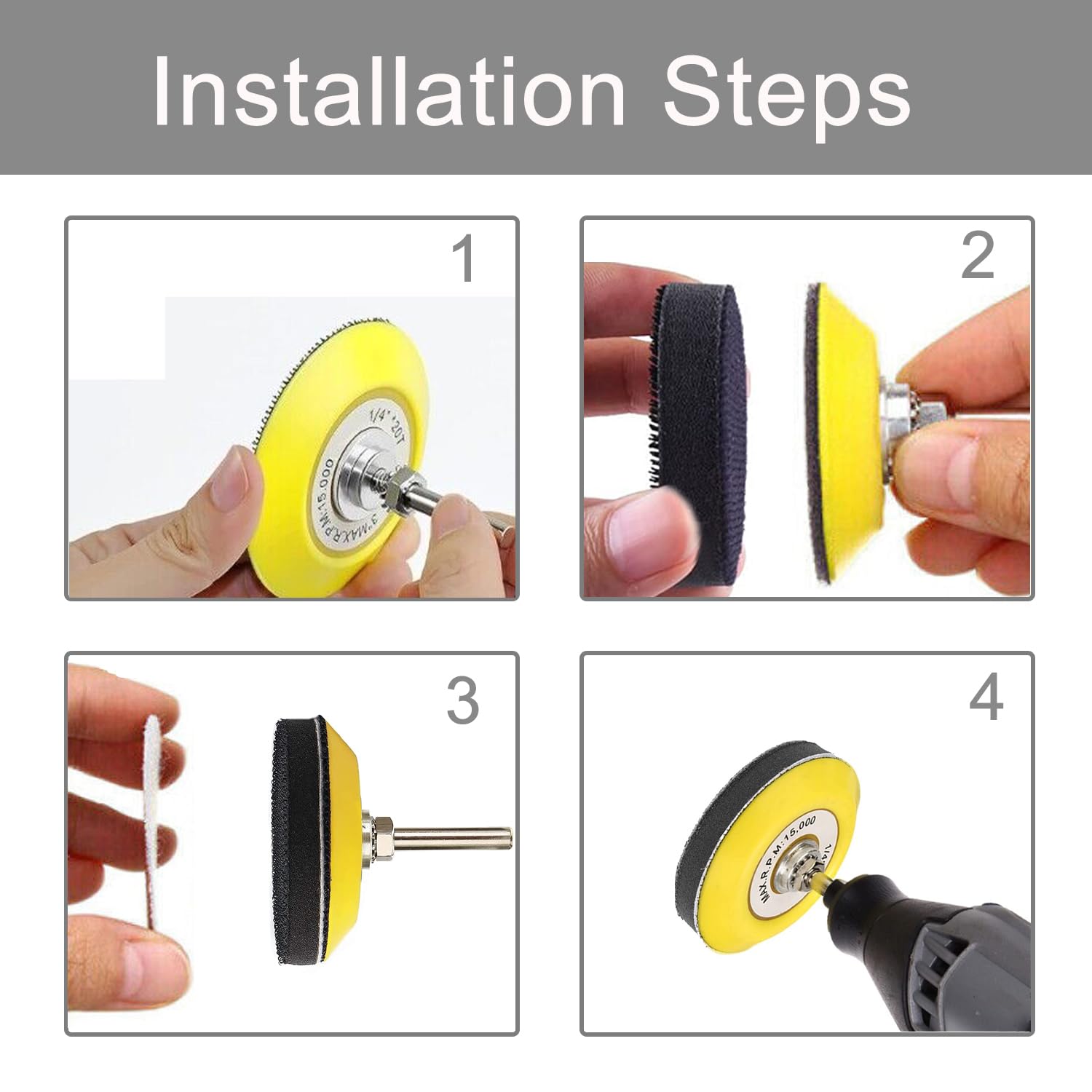 - Comprehensive 150 Pcs Sanding Discs Kit--This 150pcs set includes 150pieces 3 inch sanding discs sandpaper in grit 60 120 180 240 320 400 600 800 1000 1500 2000 3000 5000 7000 10000 (10 pieces each grit), 2 types upgraded backing pads with 1/4" shank, 2 pcs soft foam buffering pad, 2 pcs wool buffing pad, 1 pc flat orange polishing pad and 1 pc wave orange polishing pad.