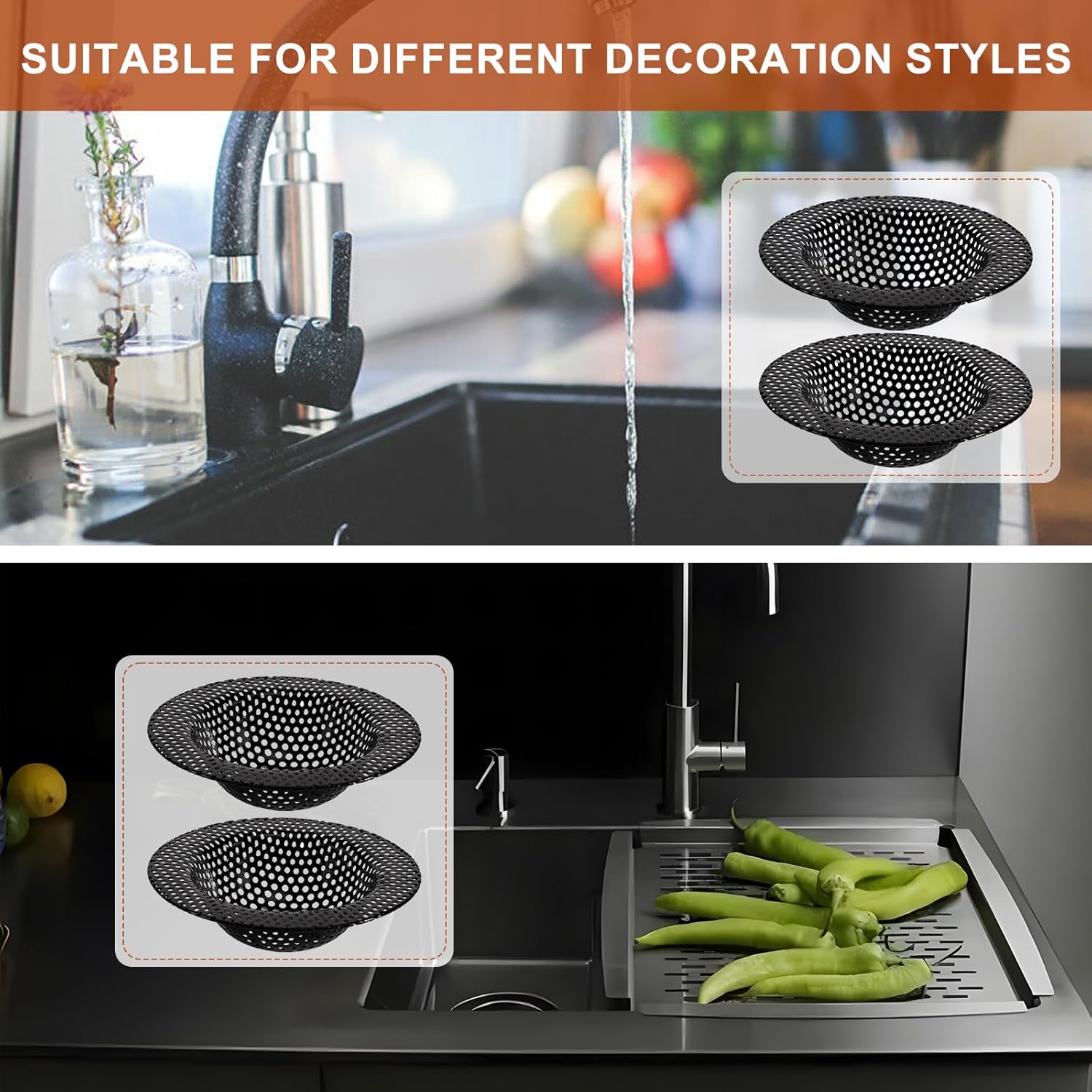 2 Pcs Black Stainless Steel Mesh Sink Drain Strainer, 4.45" Top/2.95" Kitchen Filter Trap Basket,Large Food Catch for Bathroom Bathtub Wash basin Floor drain balcony RV Drain Hole Electroplated Coatin