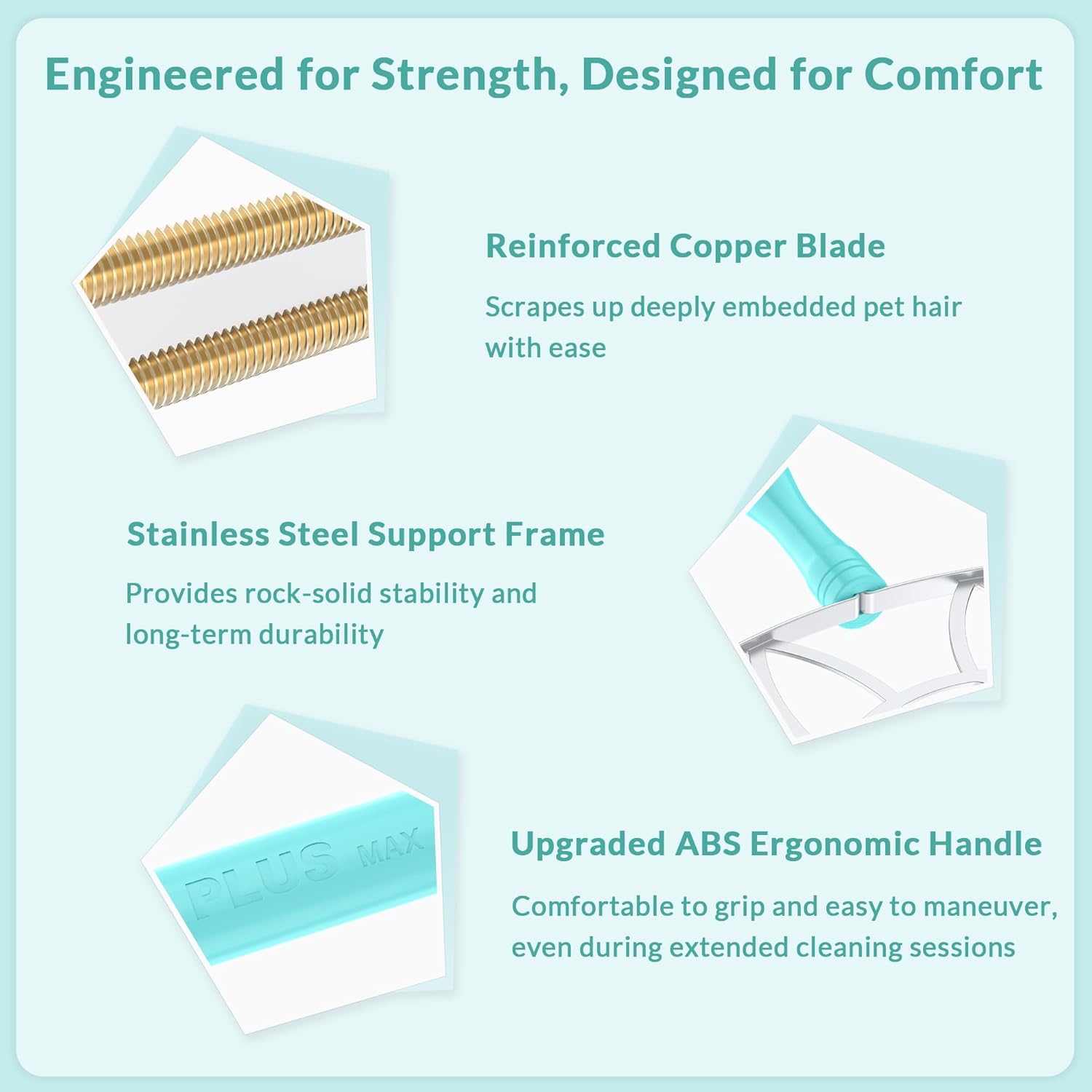 - MAXIMUM EFFICIENCY FOR STUBBORN FUR——Designed to handle the toughest pet hair challenges, this large carpet scraper deeply embedded fur and lint in a single swipe. Tackle years of accumulated hair on furniture, car mats, and pet beds effortlessly.
