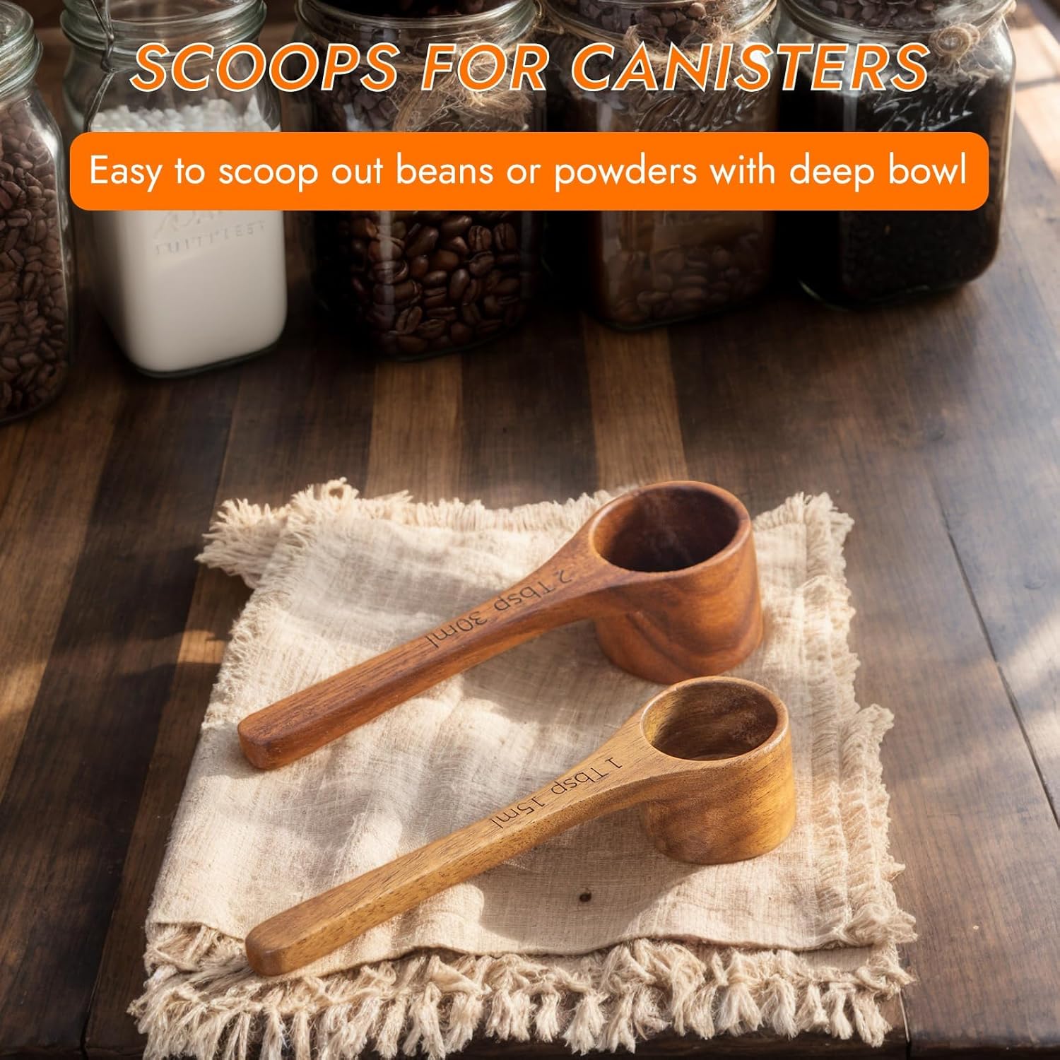 Wooden Coffee Scoop Wooden Measuring Spoons, 5.5 Inch Measuring Scoop Wooden Scoops forJars Containers, Sugar, Pantry Canisters, Laundry Detergent(1 Tbsp+2 Tbsp)