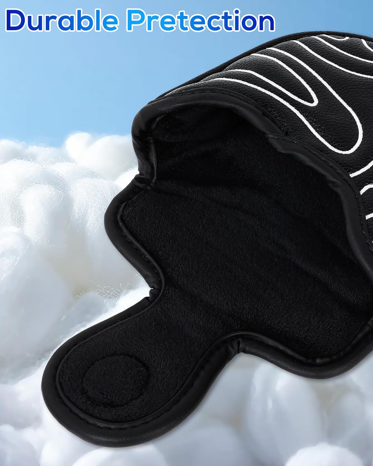 Big Teeth Golf Club Covers Full Set Driver Headcover Fairway Wood Hybrid Golf Club Iron Head Covers, Topographic Edition Putter Cover Leather Golf Head Covers Pure Black, Gifts for Men