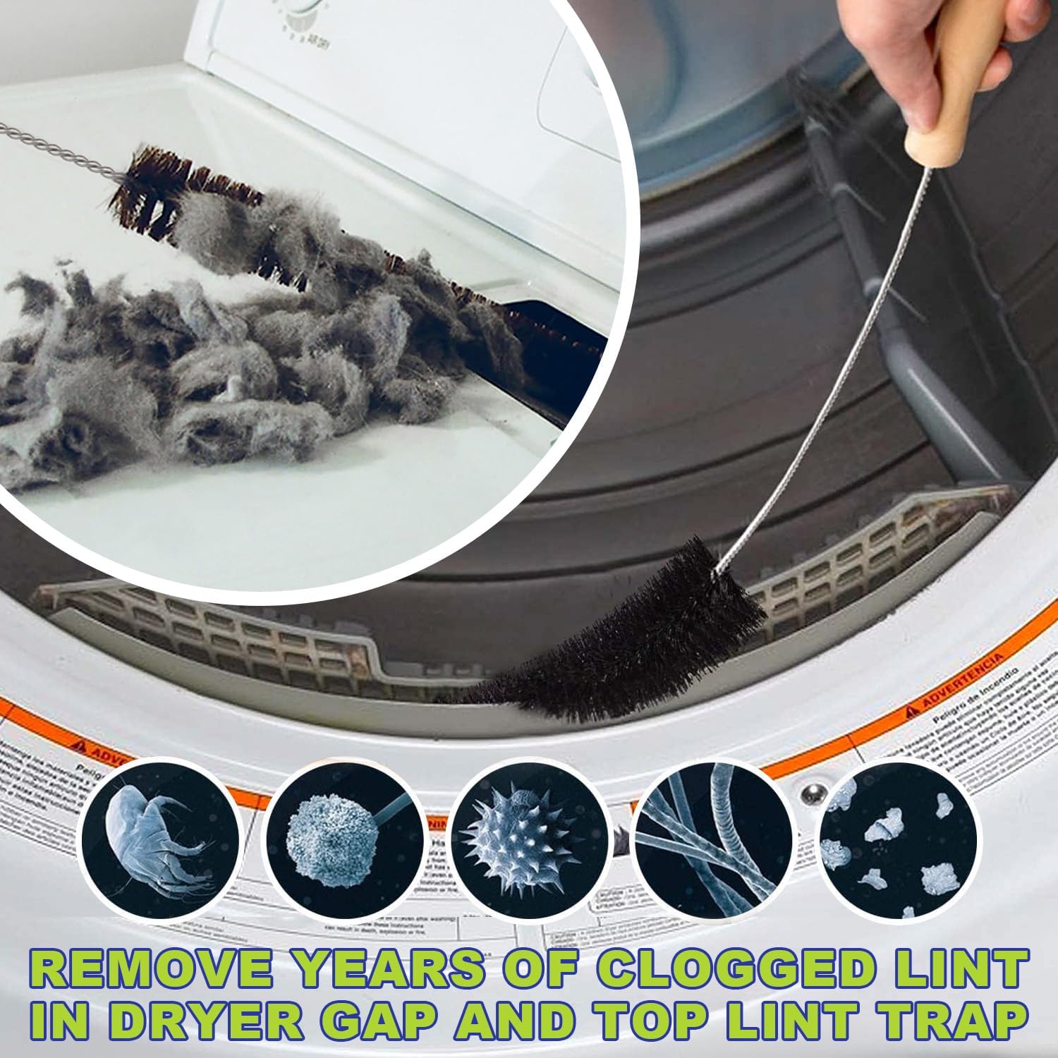 - Questions about hose clogged: If your dryer has accumulated large pieces of lints, you need to remove the lint that is adsorbed on the end of the hose in time therefore it will clogged. The diameter of the cleaner is only 19mm in order to adapt to the narrow filter port