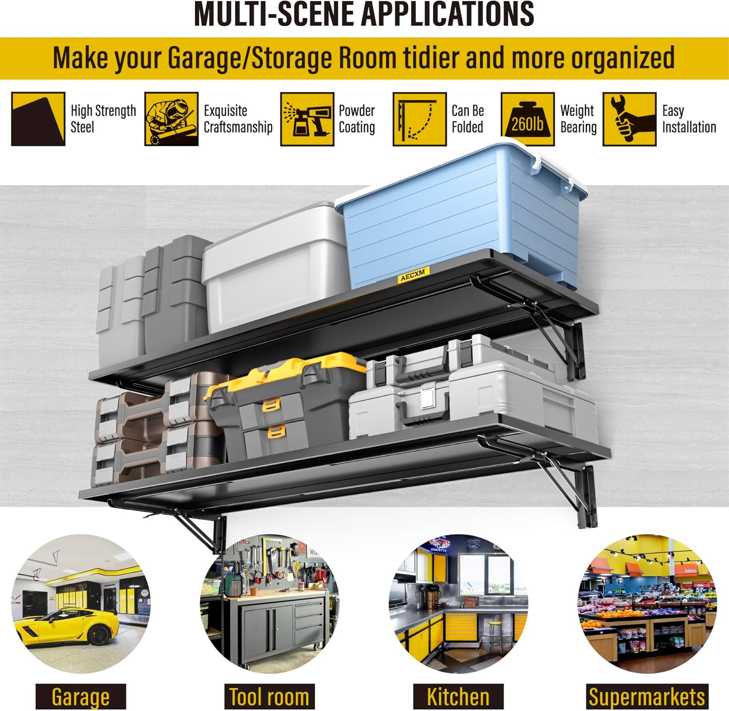 - STABLE AND SAFE: Folding storage racks are reinforced and safely designed for each connecting pivot point, With chamfered corners to prevent bumps and injuries, the overall solid and beautiful, Allowing you to organize and categorize messy and scattered items in an orderly manner, Making your garage/storage room tidier and more efficient to use while expanding the space. Perfect for walls in garages, Storage rooms, Living rooms, Kitchens and other interior spaces