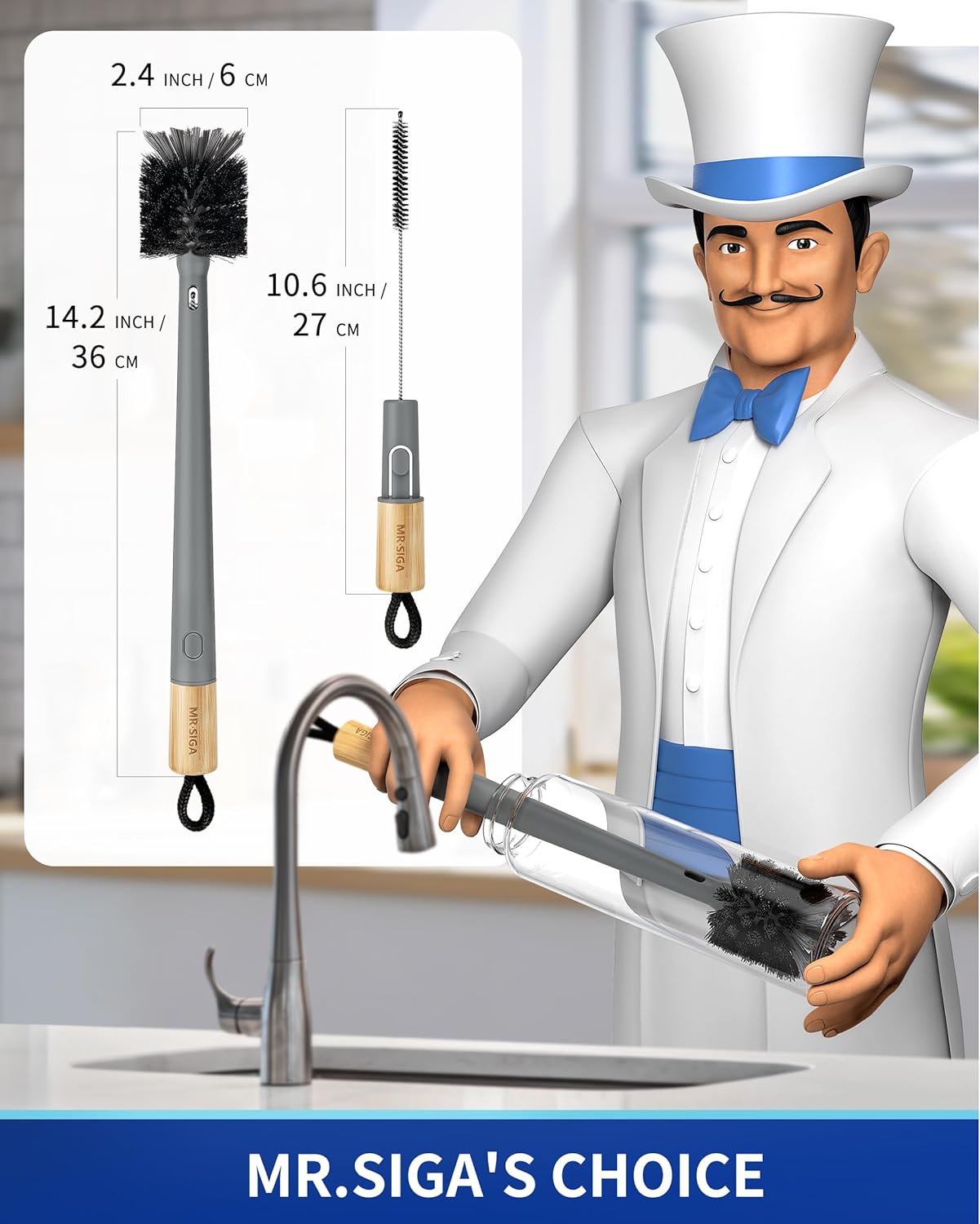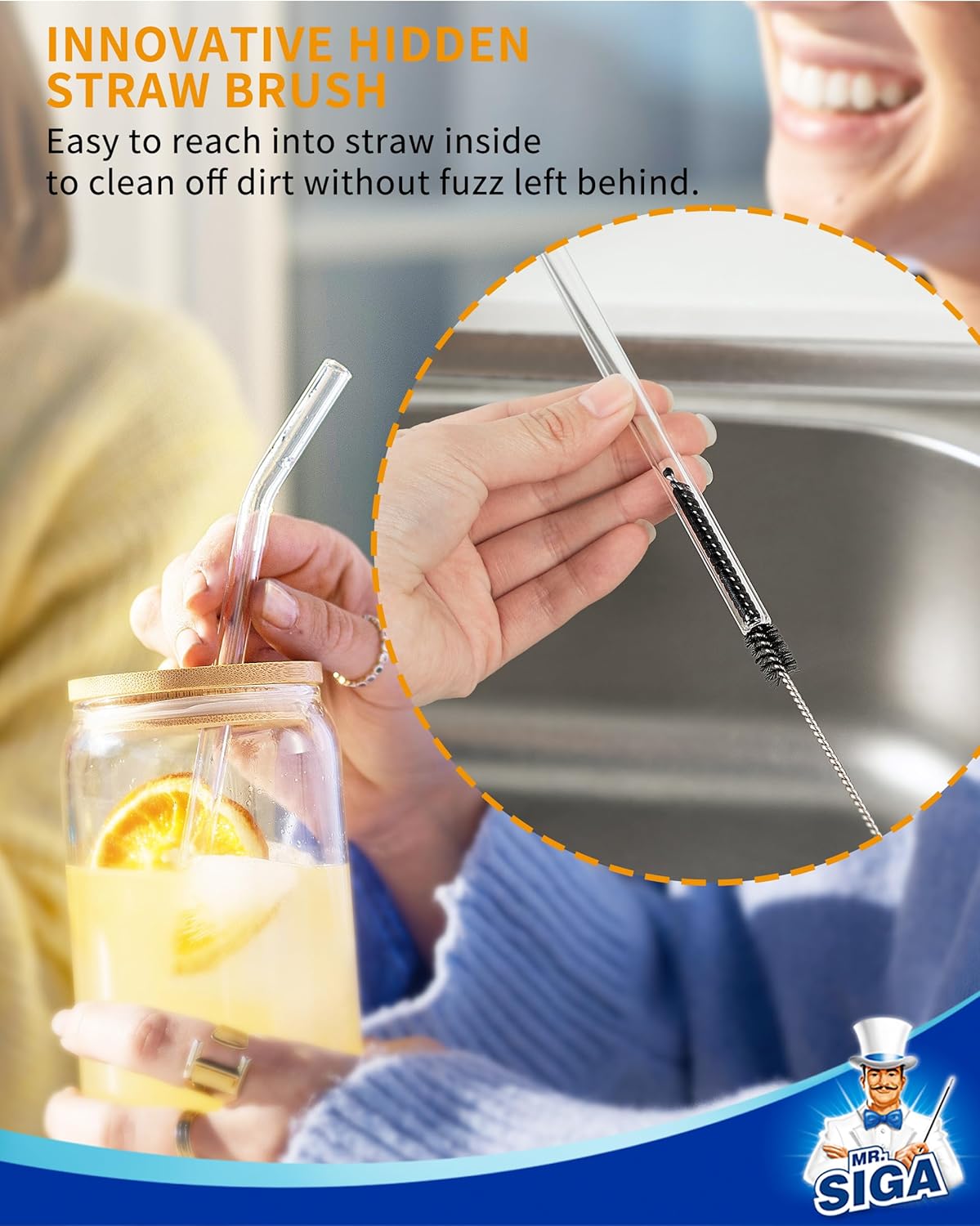 - Innovative Hidden Straw Brush Design: MR.SIGA's innovative design conceals a compact straw brush inside the cap of the bottle brush handle, making it easily accessible when needed and neatly stored away when not in use.