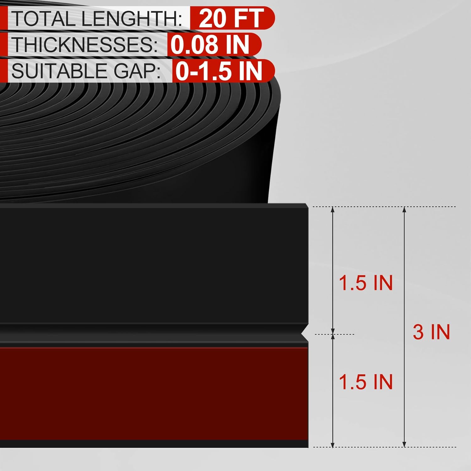 - 【Premium Material】Full door draft stopper is made of premium silicone material with high resilience and durability. Door draft seal increases in thickness to 0.08inch and fits gaps from 0-1.5inch. Door draft stopper for side of door is wear resistant, weather resistant and low odour. You can use it indoors and outdoors for a long time