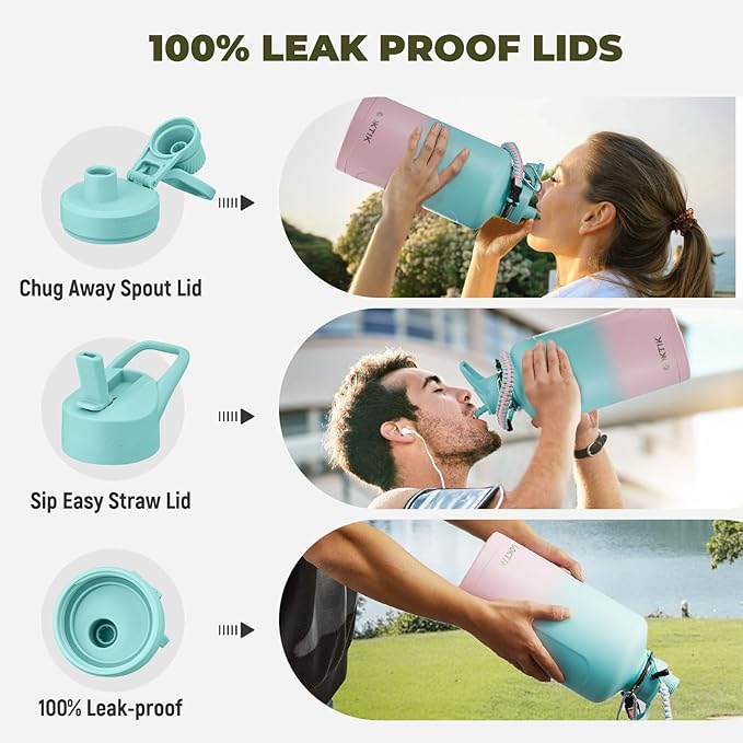 - Full Seal Leak-proof Lids: two different lids are complete LEAK PROOF & design for easy drink.Ideal for sports, fitness, and any occasion. The spout lid for easy drinking and seals shut for no leaks when you're on the go. The straw lid makes it easy to enjoy spill-proof sips, and package come with a alternative straw & a straw brush for easy cleaning