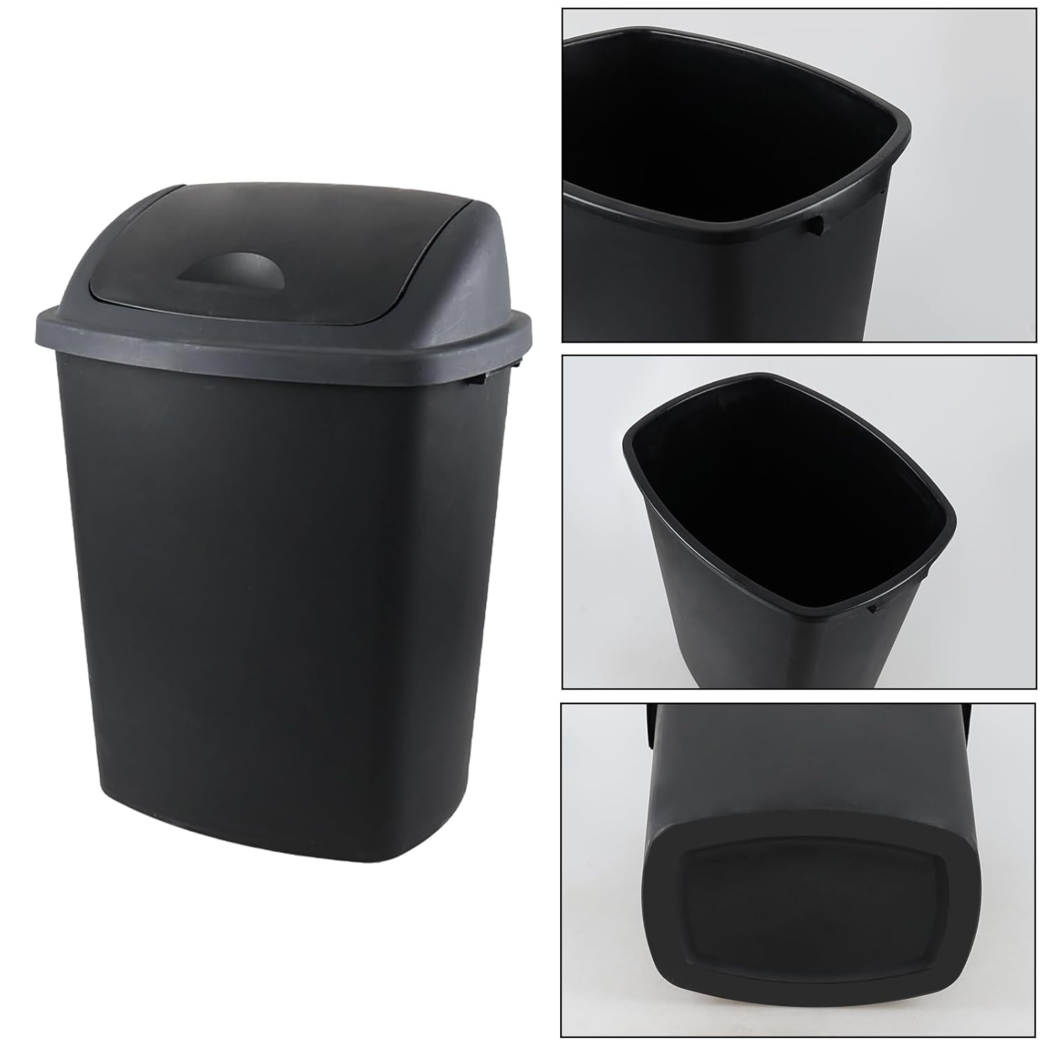 18 Gallon /70 L Swing Lid Large Garbage Bins, 4-Pack, Commercial Grade Plastic Trash Cans for Restaurants, Garages, Conference Rooms, Indoor Household and Commercial Use, Black