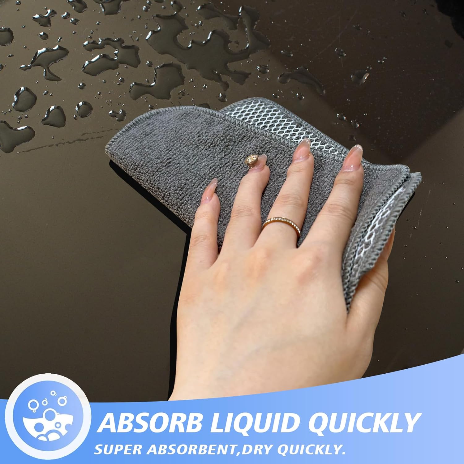 - ABSORB LIQUID QUICKLY WASHCLOTH FOR KITCHEN: These dish cloths are super absorbent, dry quickly, and any stains or grime from wiping counters washes right out with warm sopy water. Works well for buffing hard water spots from wet dishes