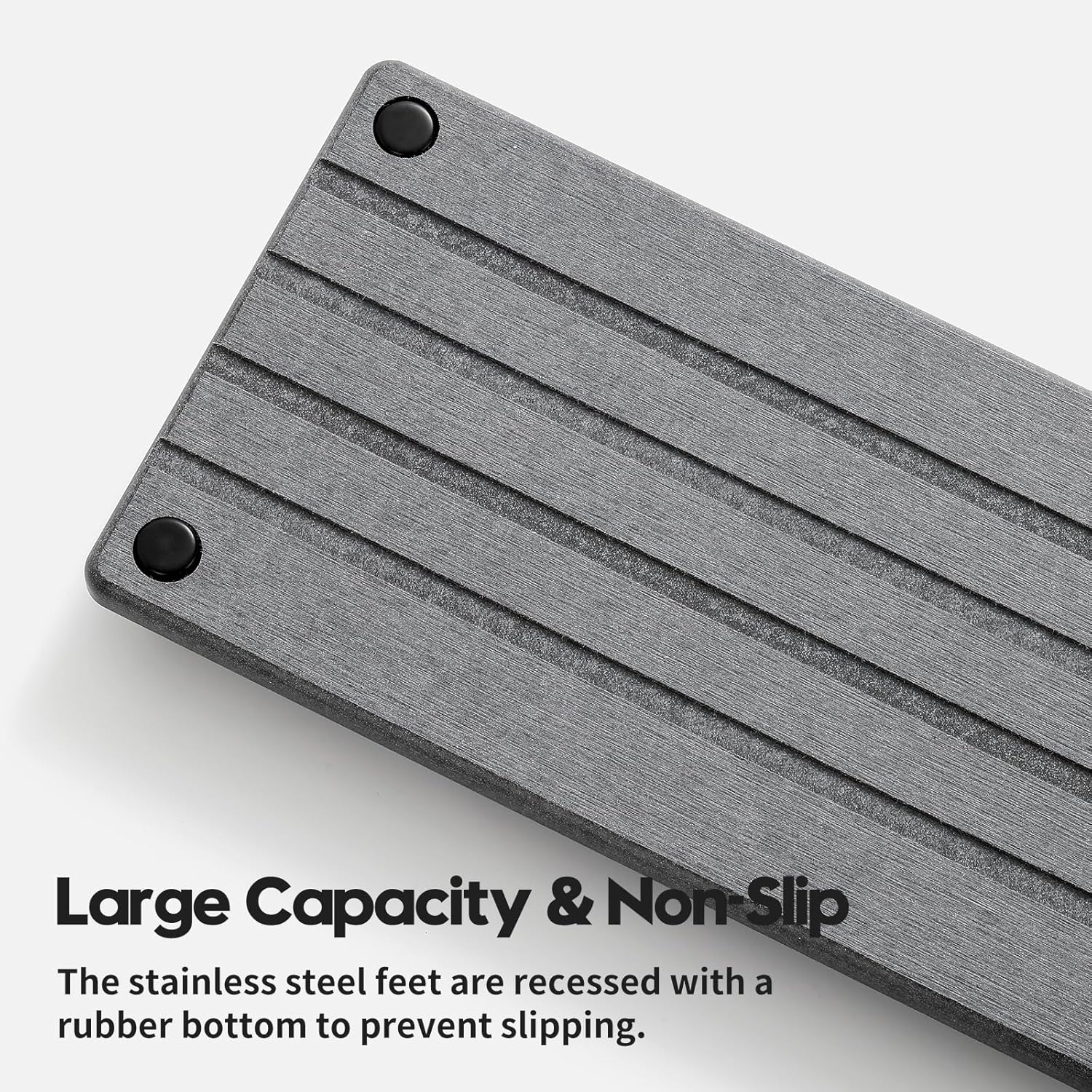 - 【Size and Capacity】This stone sink tray has a larger capacity due to the recessed feet. The 4 feet are made of high-grade stainless steel material with non-slip rubber, rust-proof. Size: 12"L x 5"W x 1"H