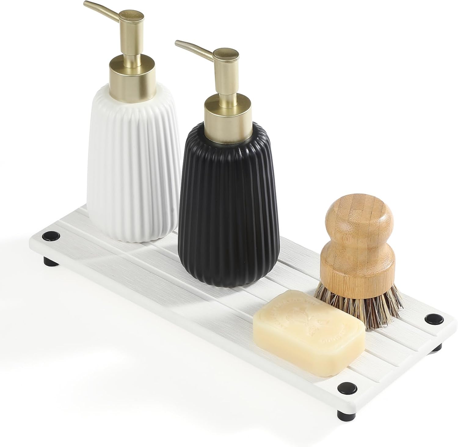 - 【Quick Stone Drying Tray for Kitchen & Bathroom Counter】Keep your kitchen and bathroom countertops neatly arranged with this instant-drying stone sink caddy. This holder rack absorbs water quickly and is specially designed for your soaps, sponges, or brushes.