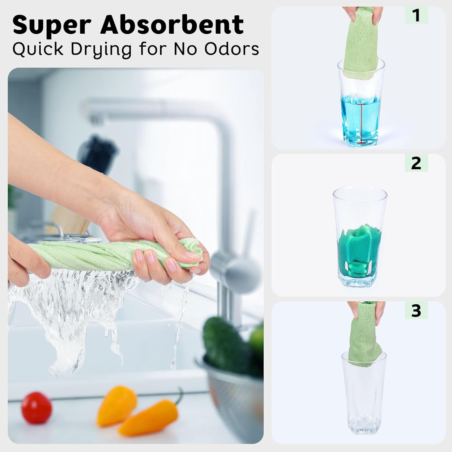 - Instant SOAK UP - Absorbing 4 times more than cotton cloths and 5 times their weight in water, these microfiber cleaning cloths are the all-purpose rags for glass, dishes, automotive,and smooth surfaces.They quickly tackle messes, oils, and liquids, outperforming sponges&conventional towels in speed and efficiency
