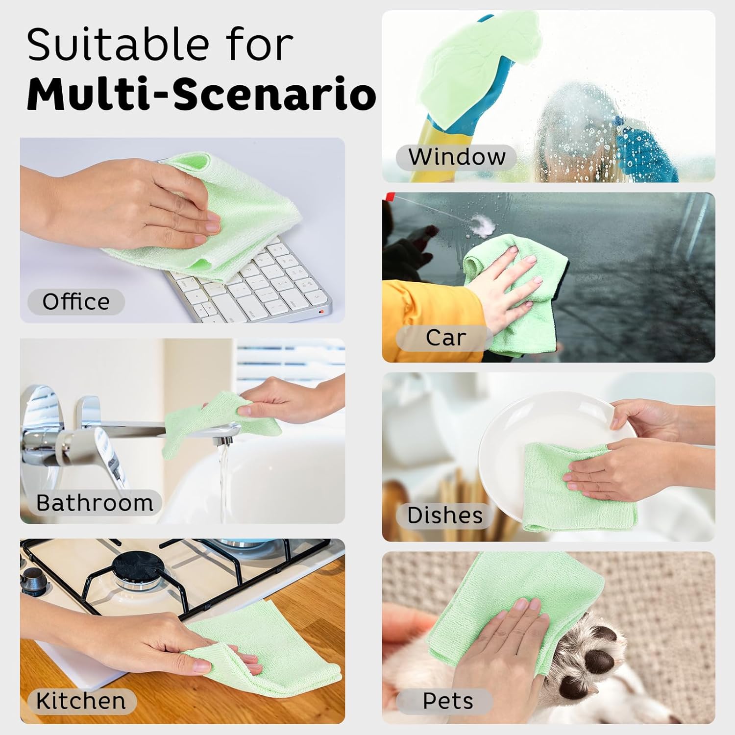 Matthew Microfiber Cleaning Cloth Roll 72Pack (12" x 12") Reusable Paper Towels&Washable Tear Away Towels,Ultra Water Absorbent Lint&Streak Free Cleaning Rags for Glass,Dishwash,Bathroom,Cars-Green