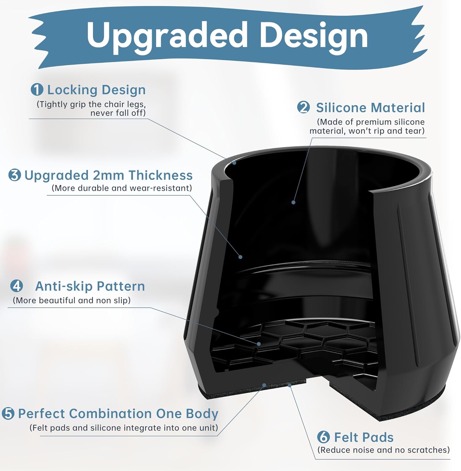 • ✅【Comprehensive Improvement】The chair leg floor protectors use special technology to combine the felt and silicone into one inseparable piece, which prevent the felt pad from falling off during use. We chose the premium quality silicone material which bonds the felt pad better, and won't tear easily when stretched.