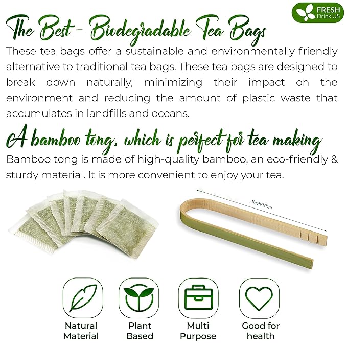 - ☘️ BIODEGRADABLE TEA BAG - NATURAL MATERIAL: The tea bags are made of natural corn fiber, which is friendly and nice for the environment. No Strings. No Wrapped. No Staples. No Adhesive. No Bleach. No Dyes - 100% Safety.