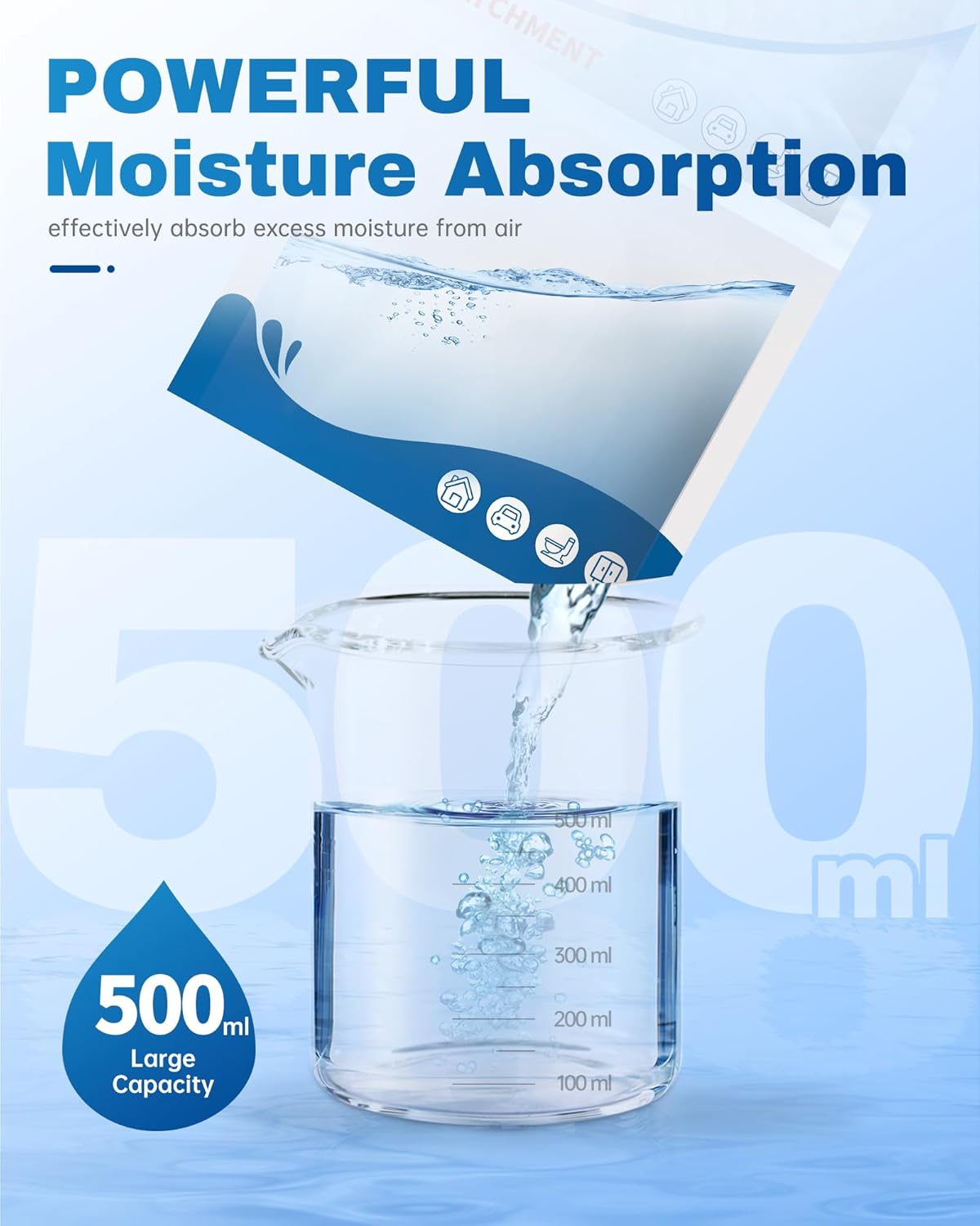 - VISIBLE EFFECT: The moisture is contained in a little plastic bag at the bottom. What amazing is that you can see the water added day by day, and really see the effectiveness. Vacplus create a dry and comfortable indoor environment.