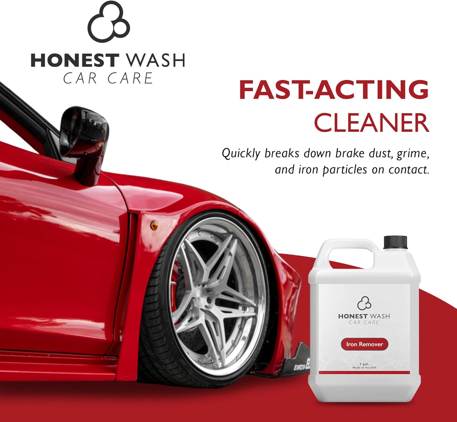 Honest Wash Iron Remover Car Detailing – Powerful Solution for Dissolving Brake Dust, Dirt, and Grime | Visible Reaction for Deep Cleaning | Safe for All Wheel and Surface Types (128 Fl Oz)