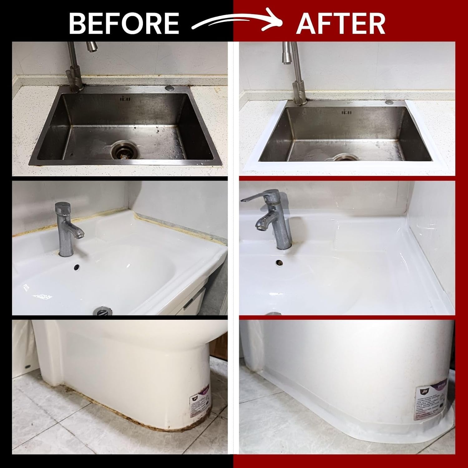 - Wide Applications: The self adhesive caulk strip provides a professional look to the bathroom area and kitchen, keeping your house clean and tidy for a long time. Adhesive tapes is ideal for tubs, toilets, corners, bathrooms, kitchen countertops, basins, sinks, gas cooktops, marble countertops as bathtub caulk tape, show tape, clear bathroom caulk. Whether it is glass surface, wood surface, metal surface, plastic surface, tile surface, marble surface, our tape can be used