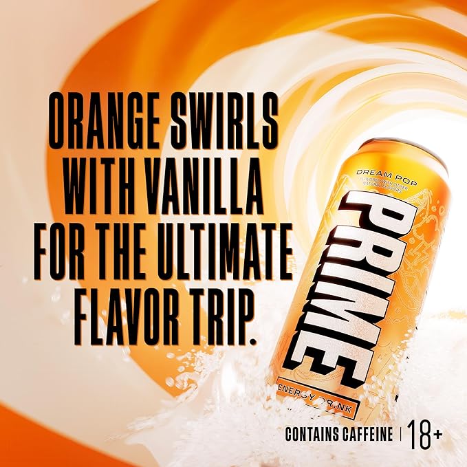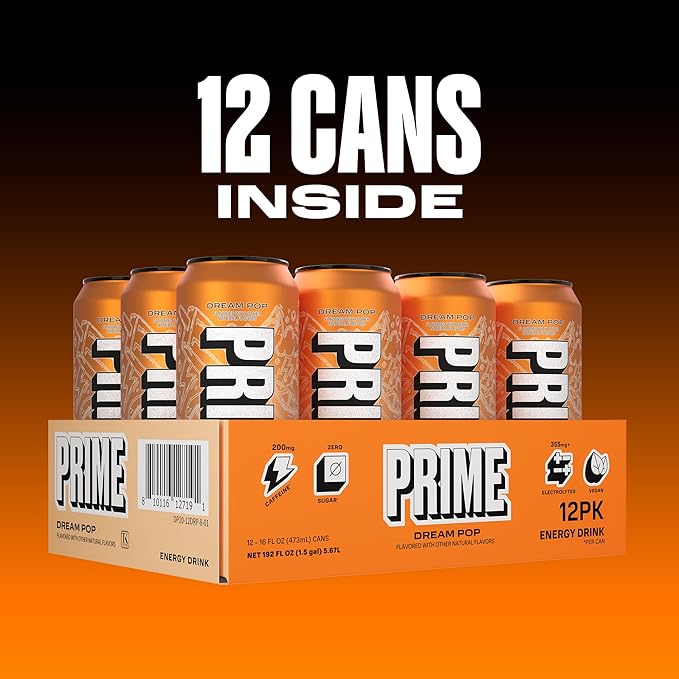 PRIME Energy DREAMPOP, Zero Sugar Energy Drink, 200mg Caffeine and 300mg of Electrolytes for Hydration, for Hydration, Vegan, Gluten Free,16 Fluid Ounce, 12 Pack
