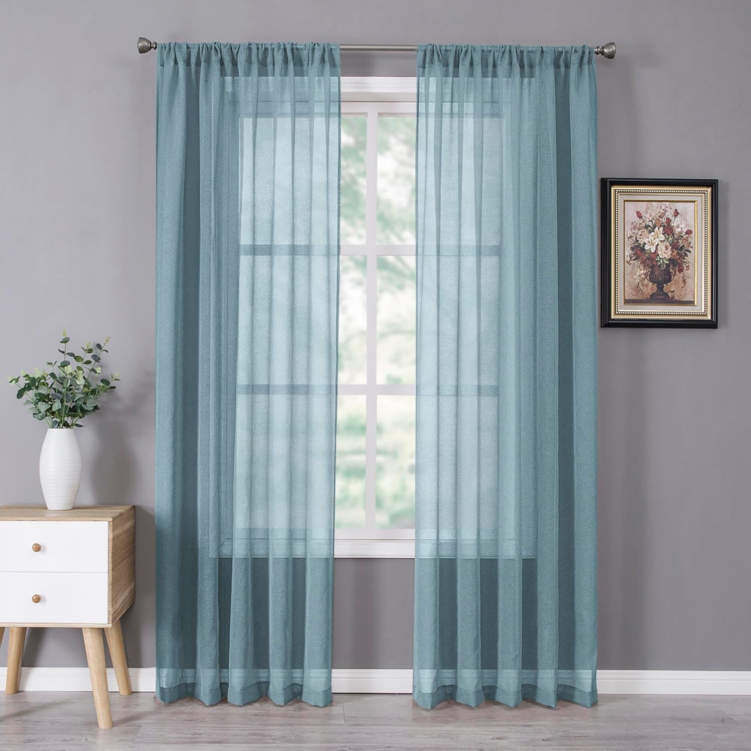 - Light Filtering: The linen look dusty blue sheer curtains can allow the right amount of natural light through to bring your room a hazy and softer vision, keep you away from someone’s glance from outside and provide you some privacy.