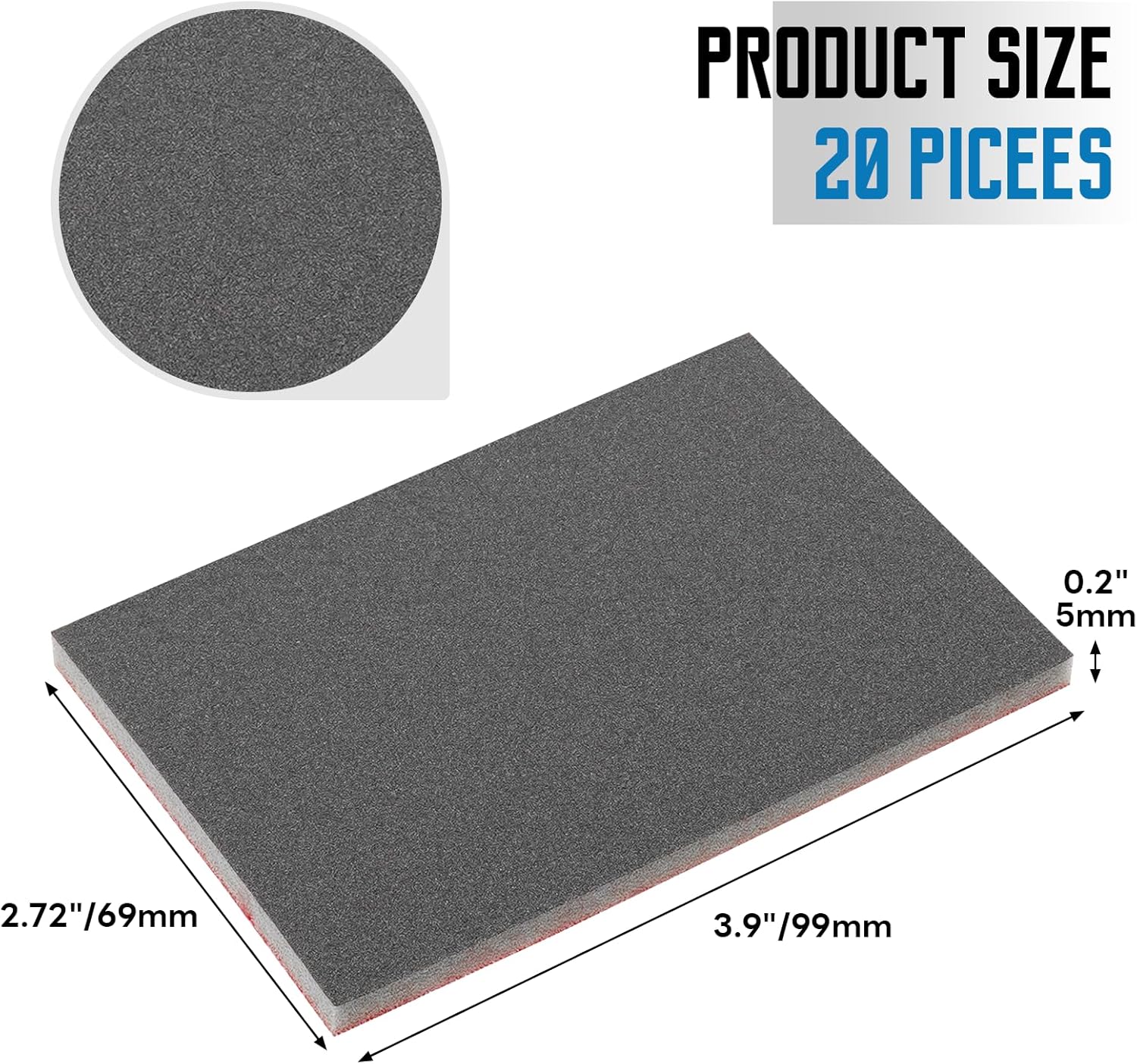 - Package Includes: 20 x 400 grit sanding sponge, length: 3.9"/99mm, width: 2.72"/69mm, you can cut it into the desired size and shape according to your needs.