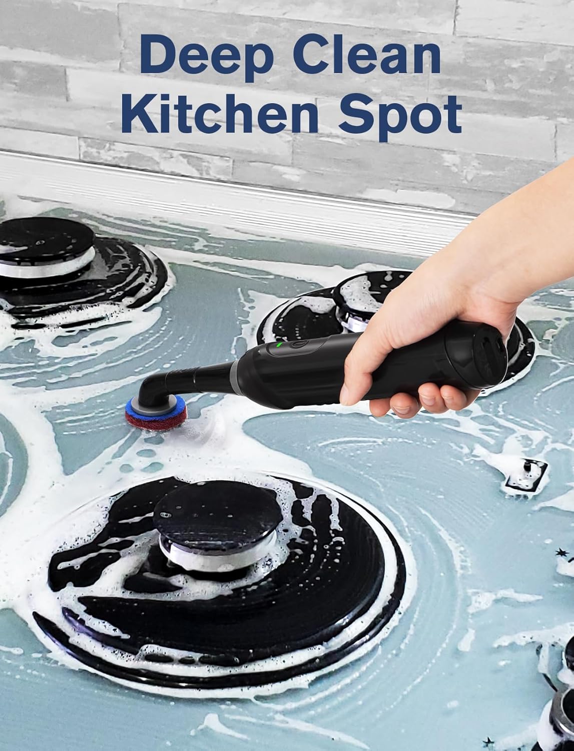 - Versatile Five Brush Heads Included: Envision the small kitchen gadgets delicately cleaning tight spaces, the soft bristle brush caressing utensils, the sticker pad for stove or kitchen; The grout brush head tackling stubborn grout stains, restoring the grout lines to their original brightness; The stainless steel wire brush heads made quick work of removing soap scum and grime from your tile floor, leaving them sparkling and shiny clean