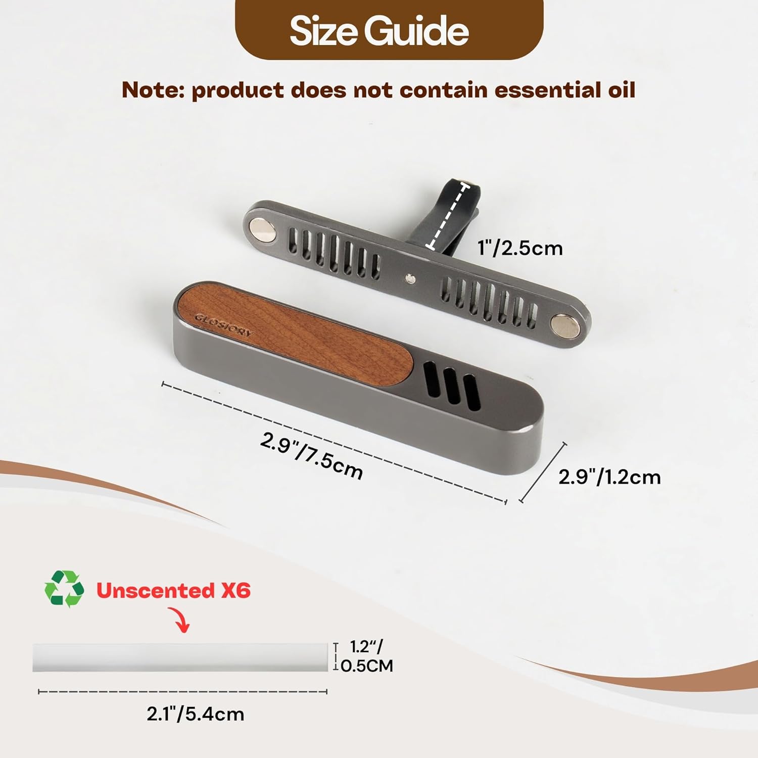 - PREMIUM DESIGN - The Glosiory car diffuser vent clips is expertly crafted from premium metal and natural walnut wood, offering a sophisticated and aesthetic that seamlessly complements any vehicle interior. Its timeless design not only serves as a functional car scent diffuser but also as a stylish car accessory that enhances your vehicle's ambiance and inteior.Adds a touch of luxury to any vehicle.- [Note: Natural wood grain varies,each piece is with different color&pattern.]