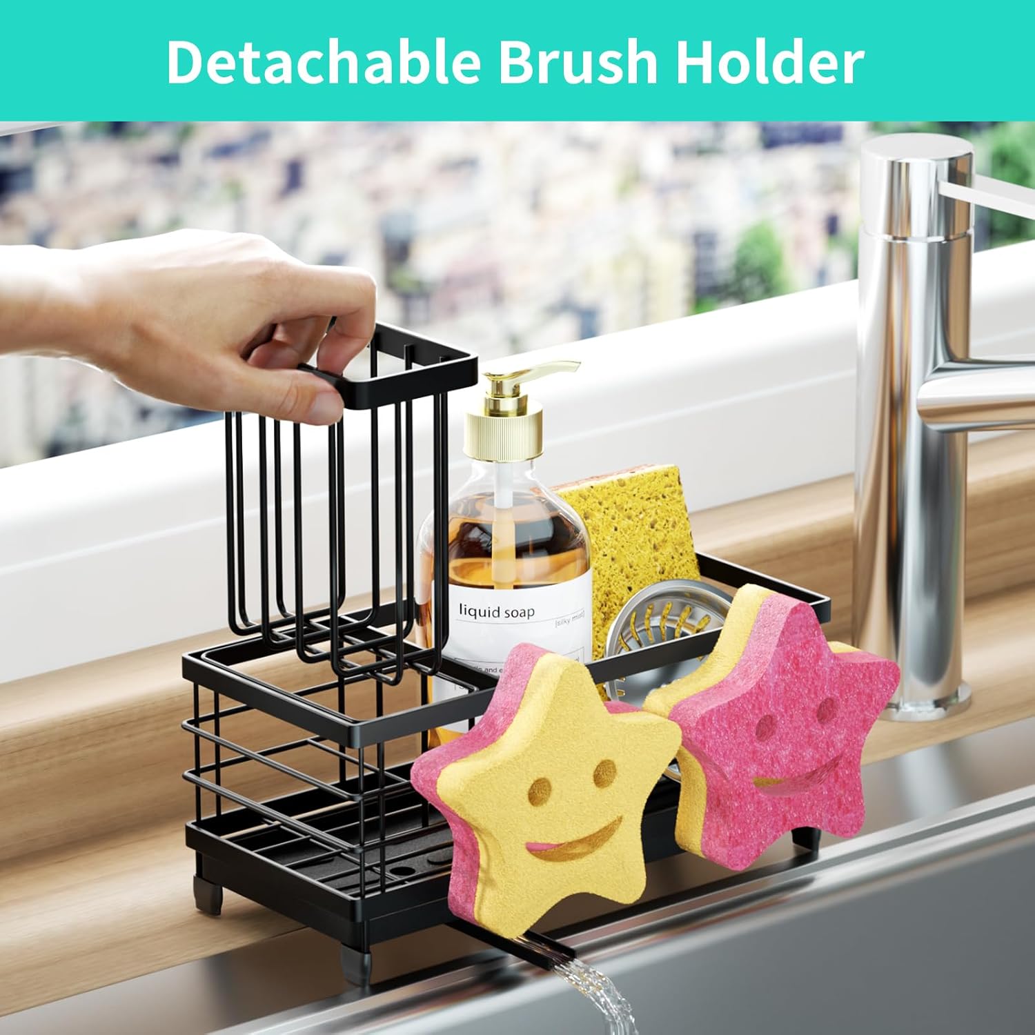 - [Detachable Brush Holder]: HapiRm kitchen sink caddy also comes with a removable brush holder, creating a dedicated spot for your dishwashing brushes. Whether you need extra space or prefer to use the holder separately, this feature offers flexibility and adaptability