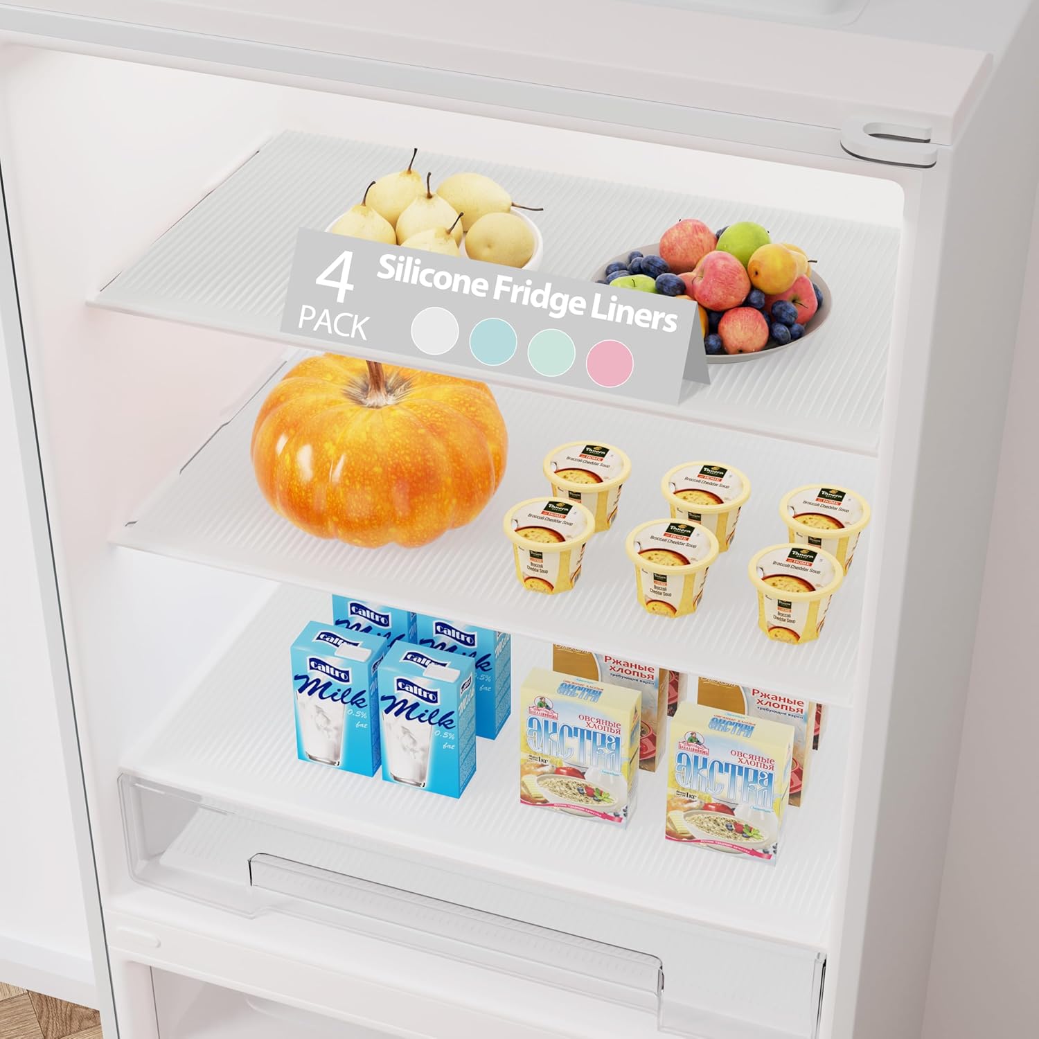 - Safety Material: Made of 100% food-grade silicone, BPA-free, non-toxic, no fading, highlights is that we have added the anti-slip Stripped texture to strengthen friction, to protect it against annoying spills, drips and food stuck on your fridge shelves, saving you the time and effort you spend cleaning your fridge.