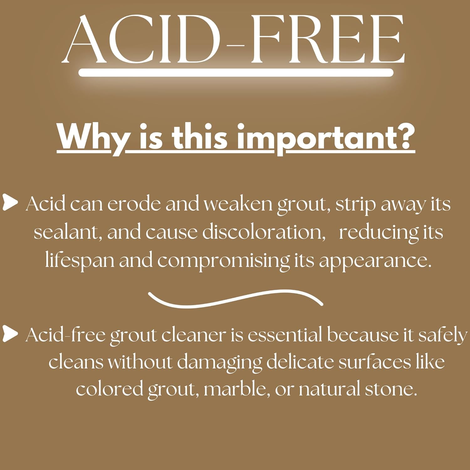 - Acid-Free Formula: Ensures safe and effective cleaning of all natural stone surfaces, preventing etching and damage while preserving the beauty and integrity of your tiles and grout.