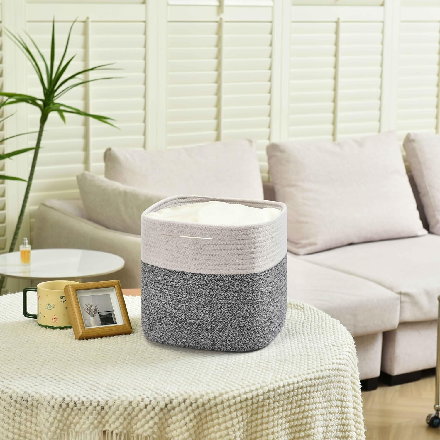 3 Pack Storage Cubes 11 Inch Cotton Rope Woven Baskets for Organizing Cube Bin Square Shelves Organizer,Classroom,Kids Toy Bins,Closet,Baby Nursery(Grey)
